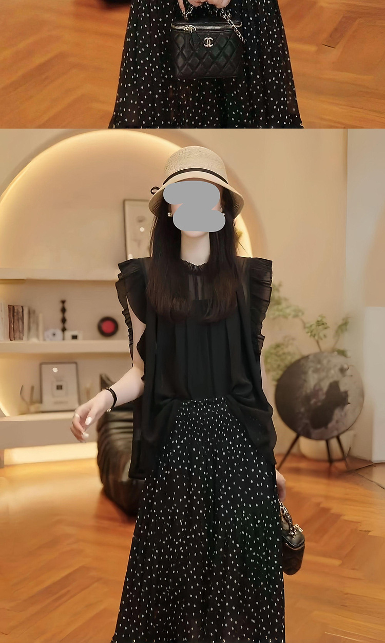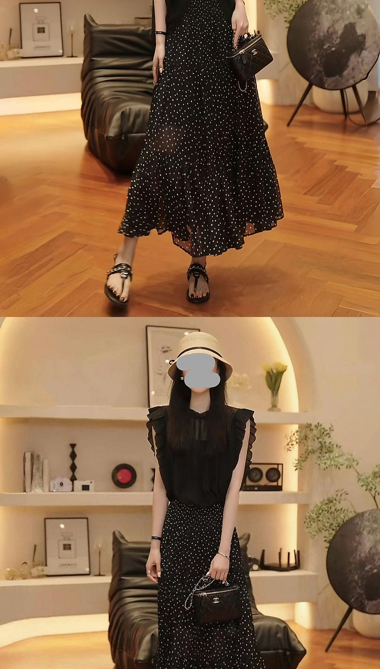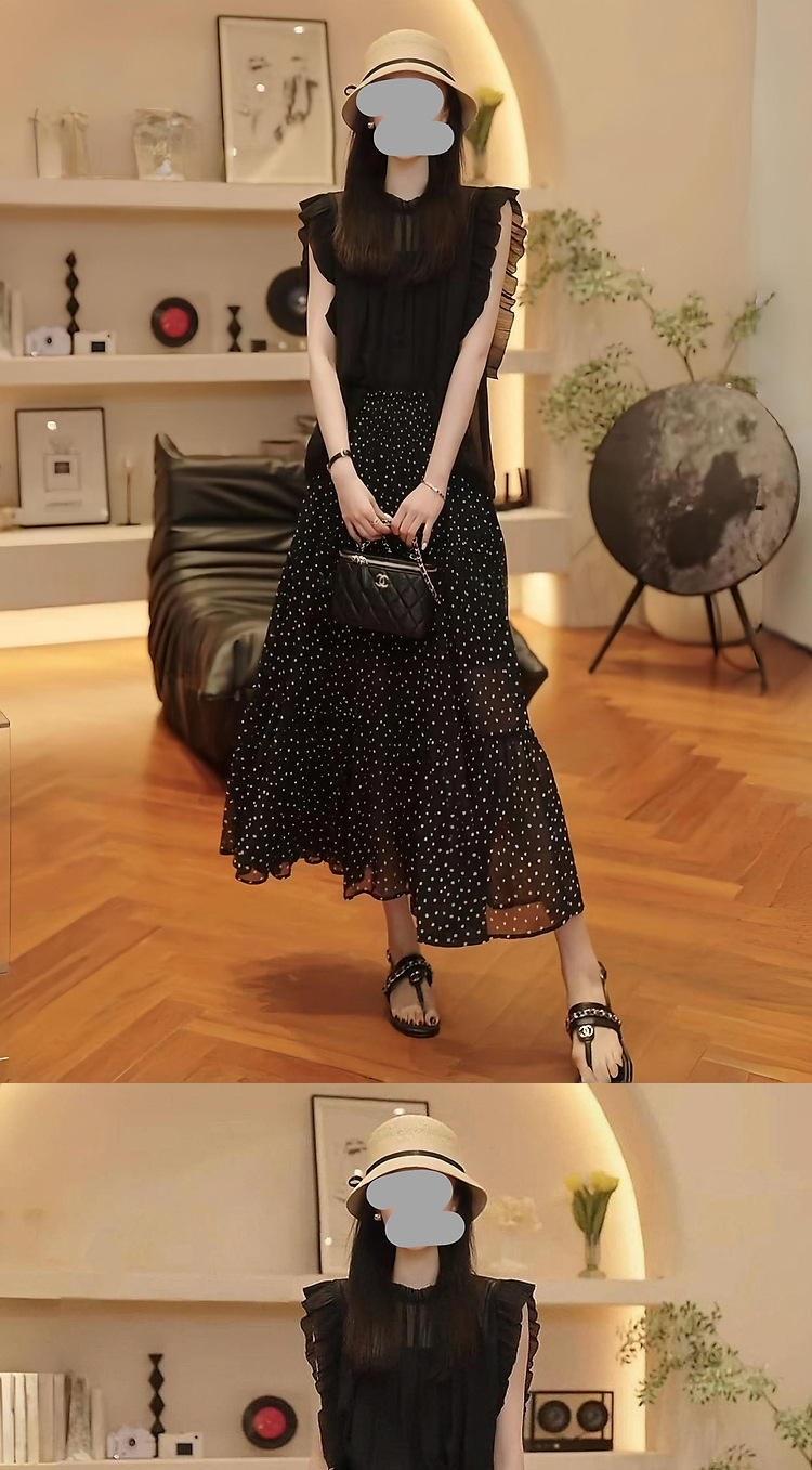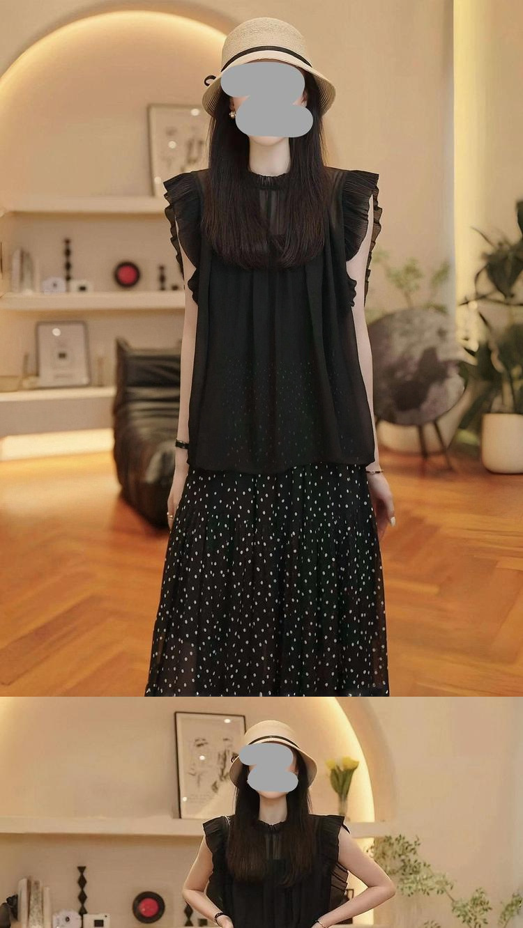 2025 여름 연령 감소 슬리밍 민소매 탑 통기성 블라우스 통근 다용도 폴카 도트 스커트 여성용 기질 슈트스토어 가기