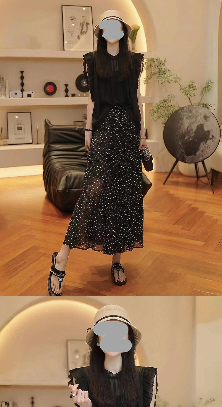 • WH5106 # 블랙 탑+땡땡이 스커트 [투피스세트]