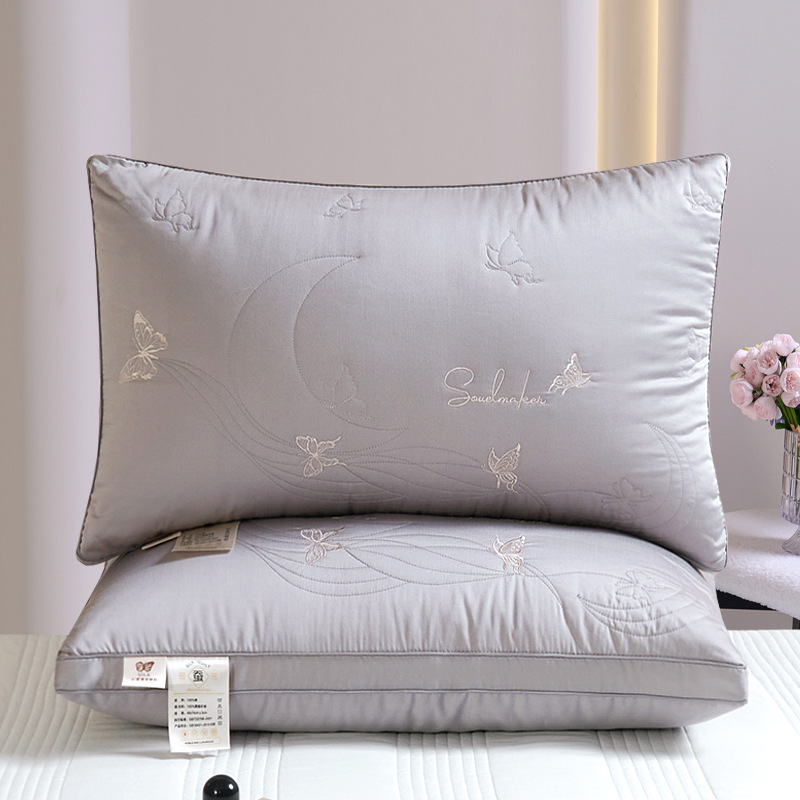 • 면 자수 깃털 실크 베개 나비 베개 회색 높은 베개