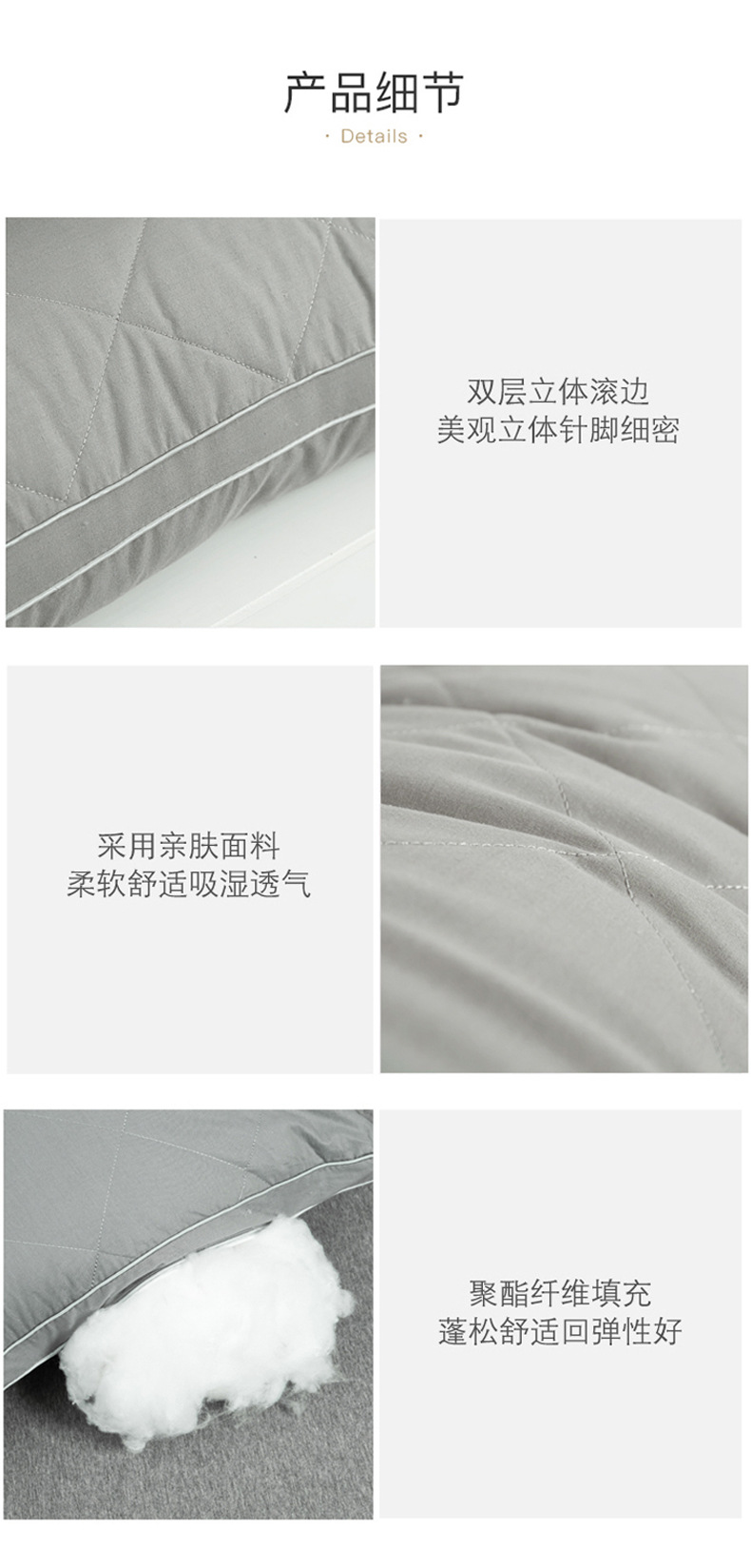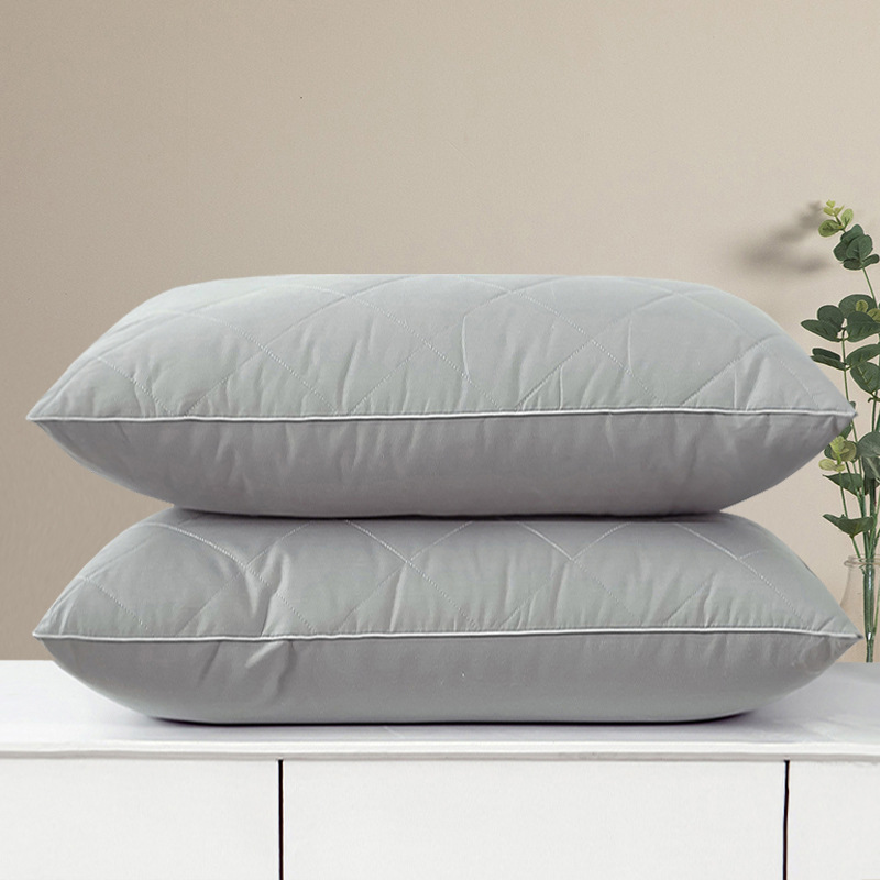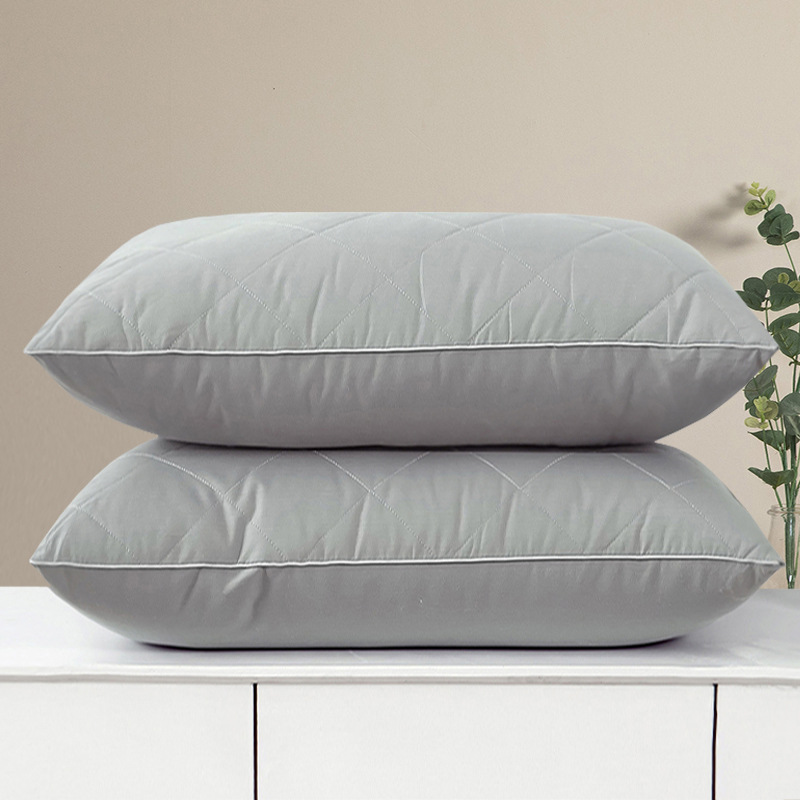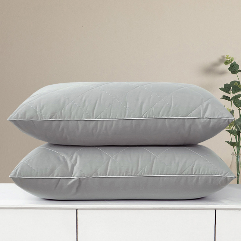 • 브러시드 퀼팅 자수 베개 그레이 단면 낮은 베개