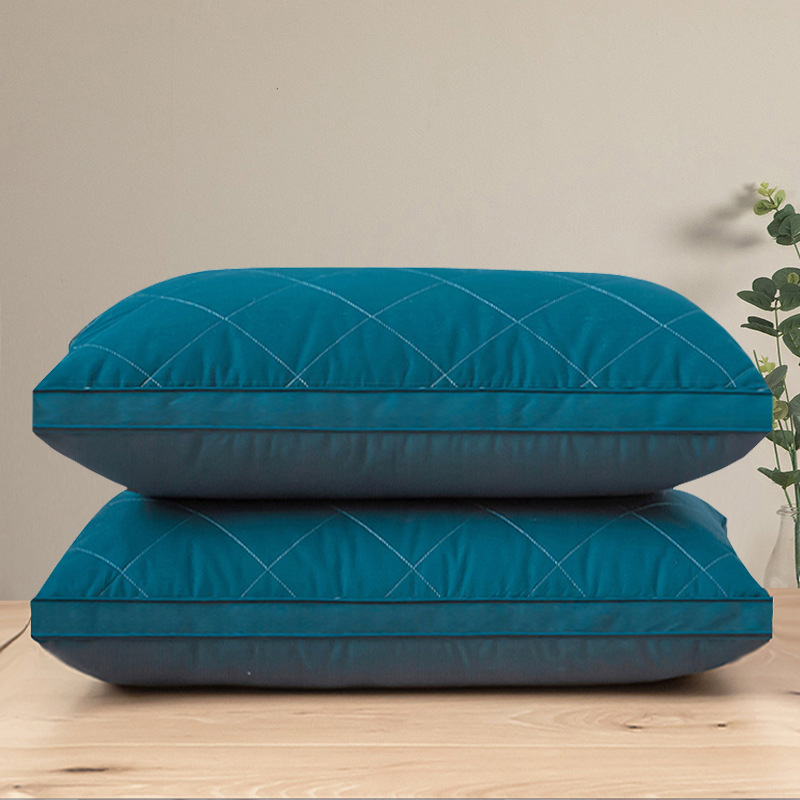 • 브러시드 퀼팅 자수 베개 블루 단면 하이 베개