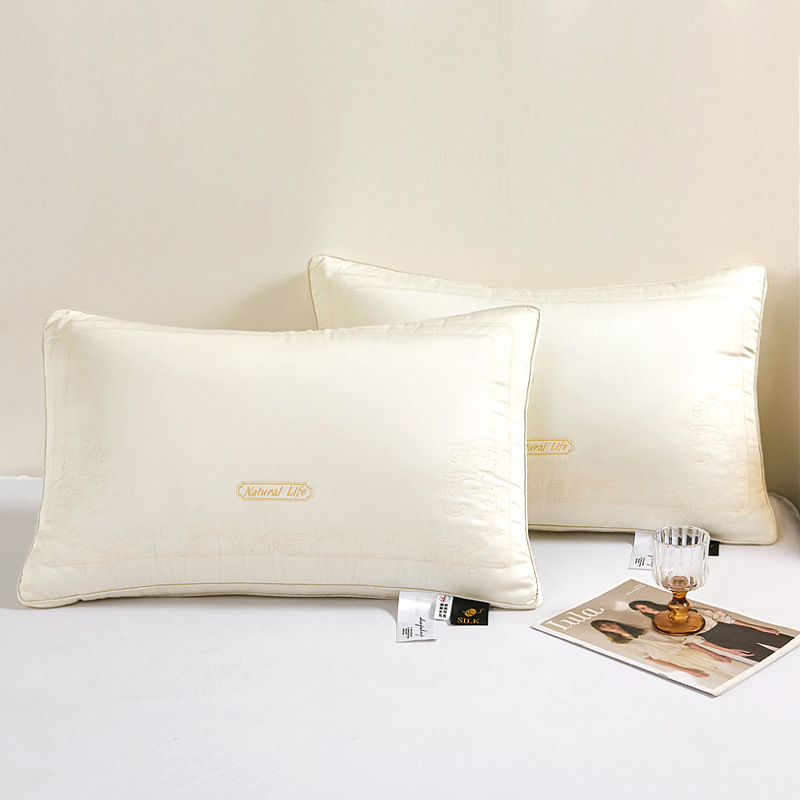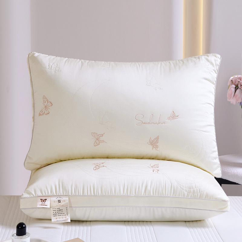 • 면 자수 깃털 실크 베개 나비 베개 흰색 중간 베개