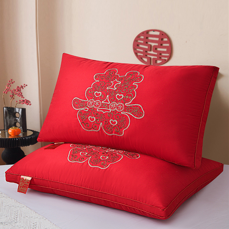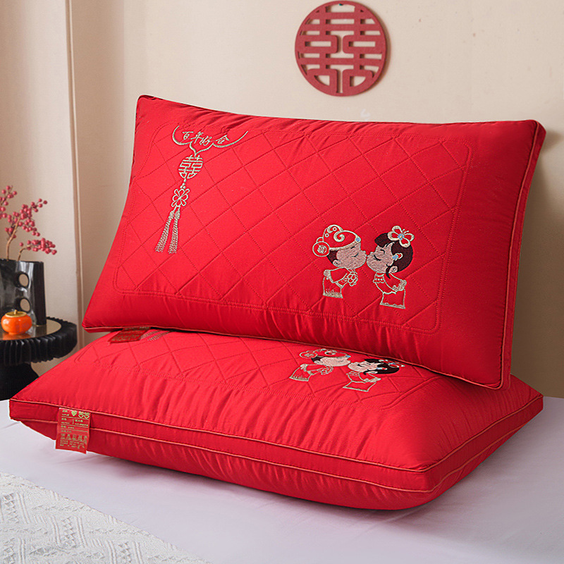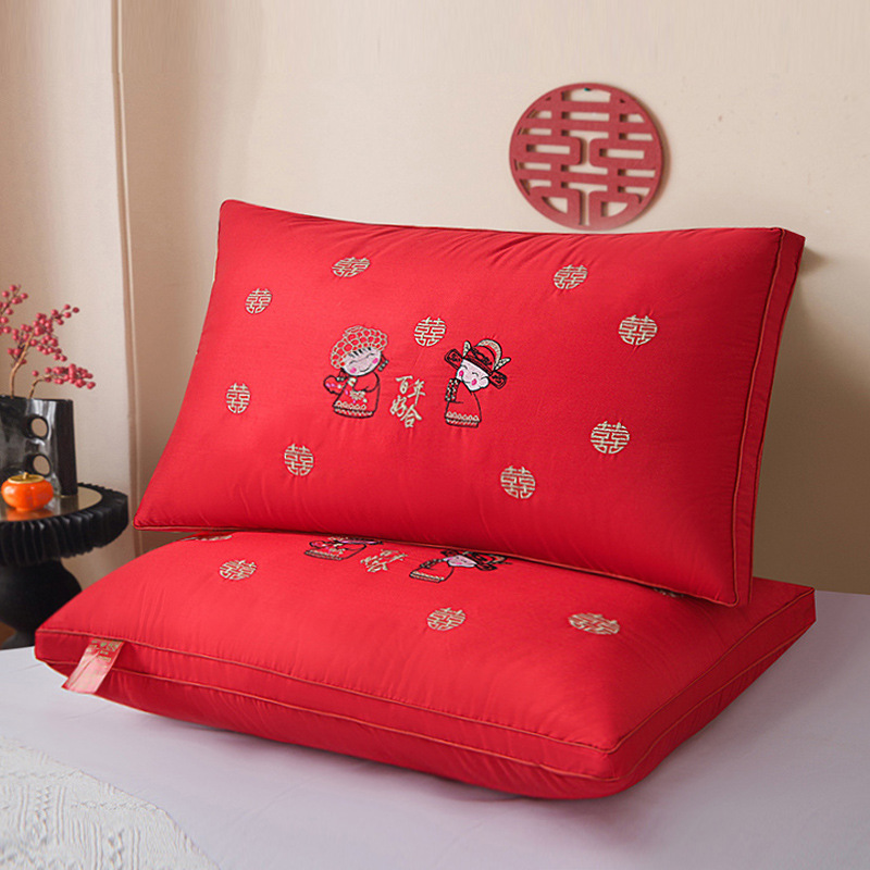 제조 업체 도매 웨딩 베개 코어 순수 코튼 빅 레드 웨딩 축제 결혼식 동반자 한 쌍 선물