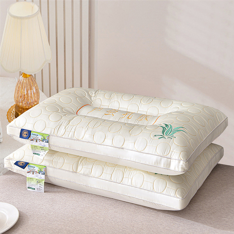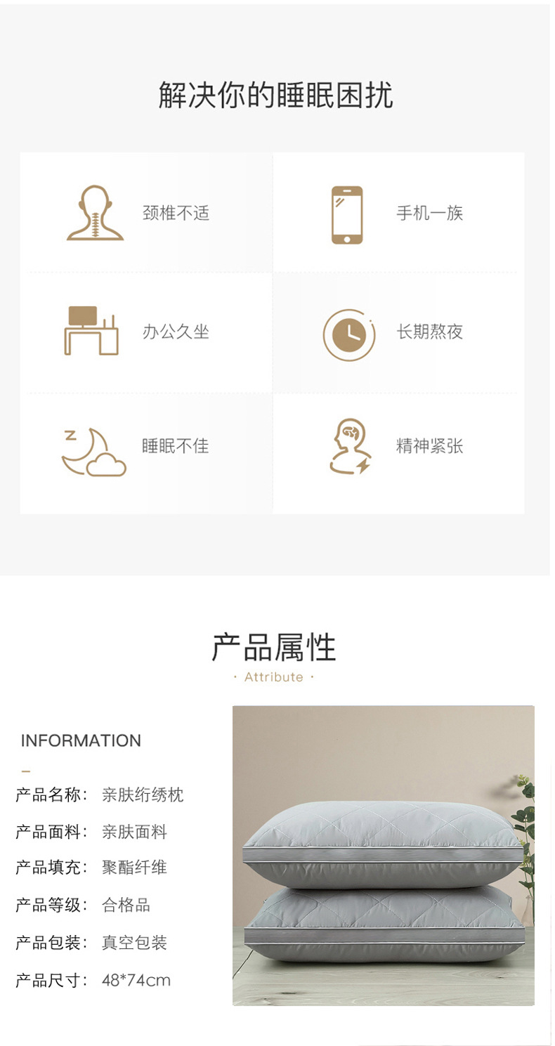 • 브러시드 퀼팅 자수 베개 흰색 단면 중간 베개