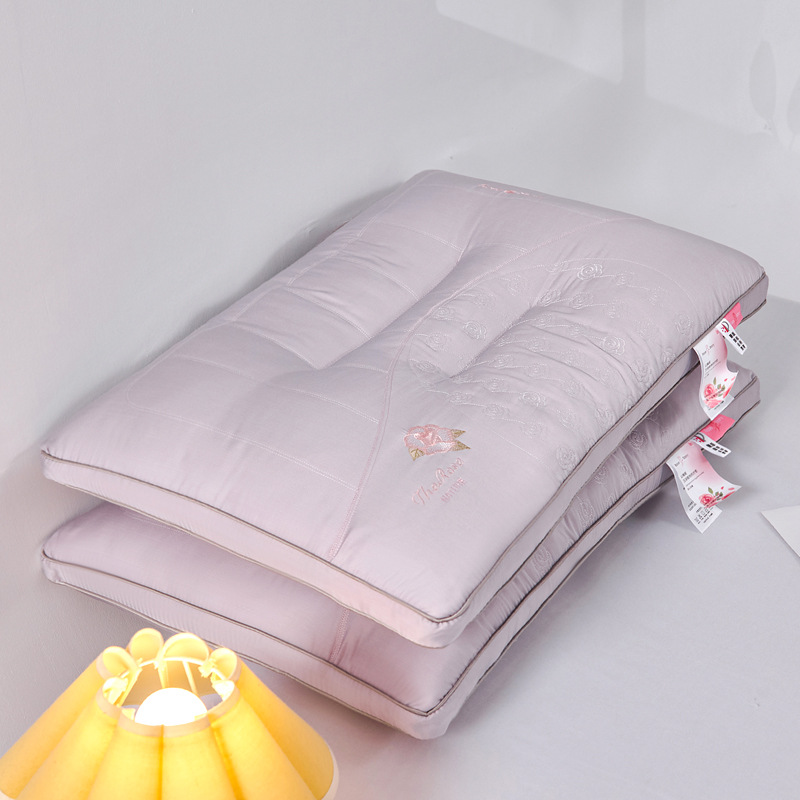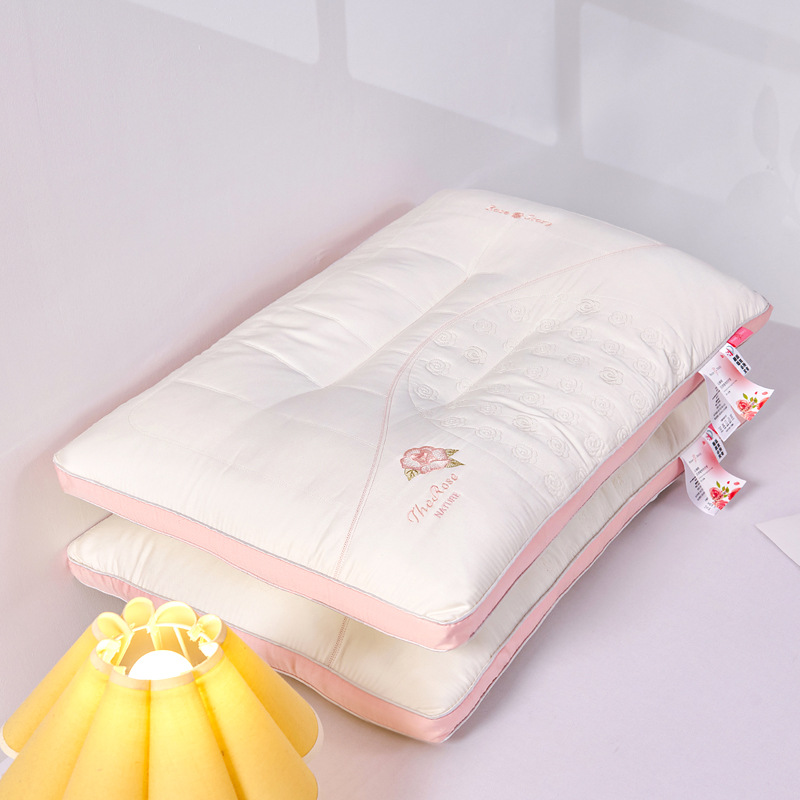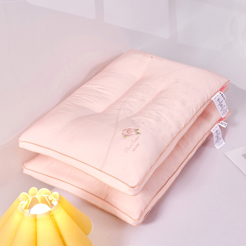 • 장미 자수 깃털 실크 목 베개 핑크 각 1000g