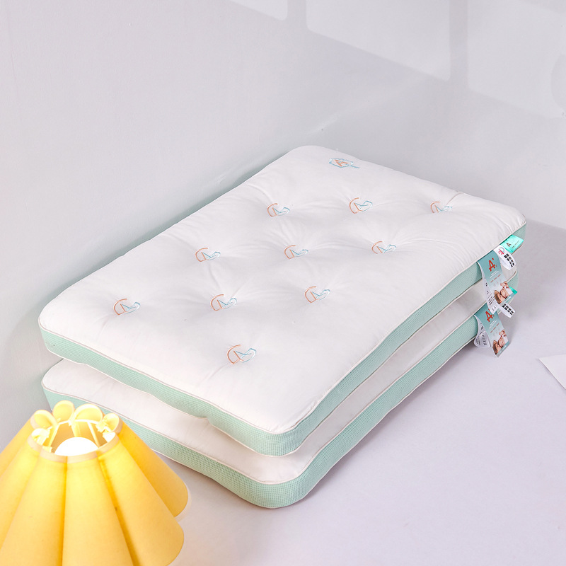• 브러시드 퀼팅 자수 베개 흰색 단면 낮은 베개