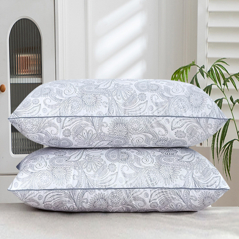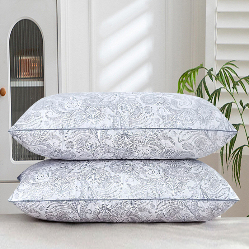 • 면 자수 깃털 실크 베개 나비 베개 그레이 미디엄 베개