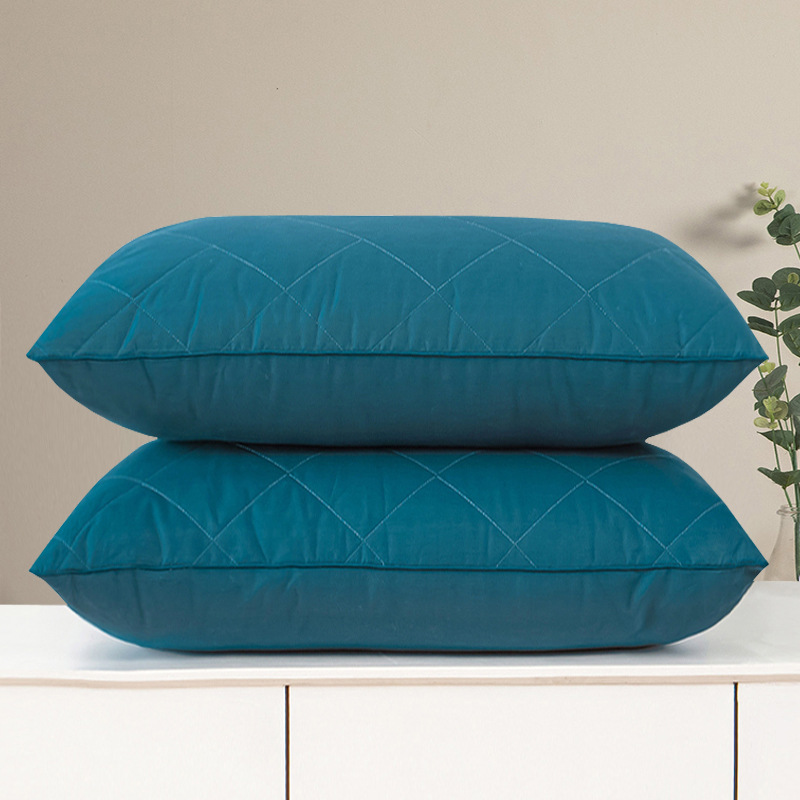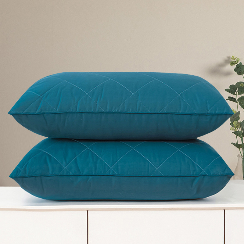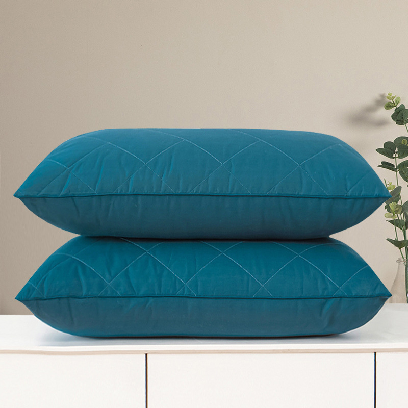 • 브러시드 퀼팅 자수 베개 블루 단면 중간 베개