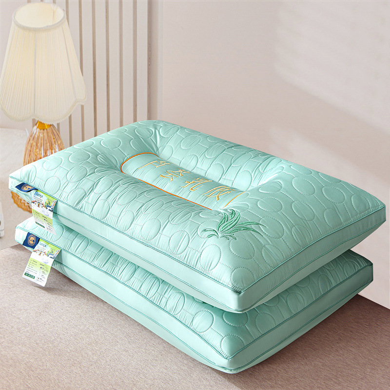 • 브러시드 퀼팅 자수 베개 적갈색 단면 낮은 베개