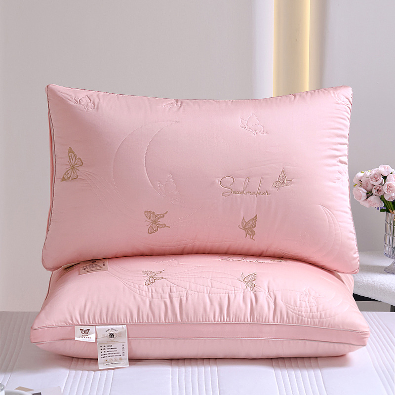 • 면 자수 깃털 실크 베개 나비 베개 핑크 높은 베개