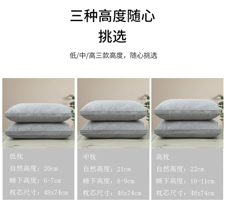 • 클래스 A 면 호텔 깃털 실크 베개 높은 베개