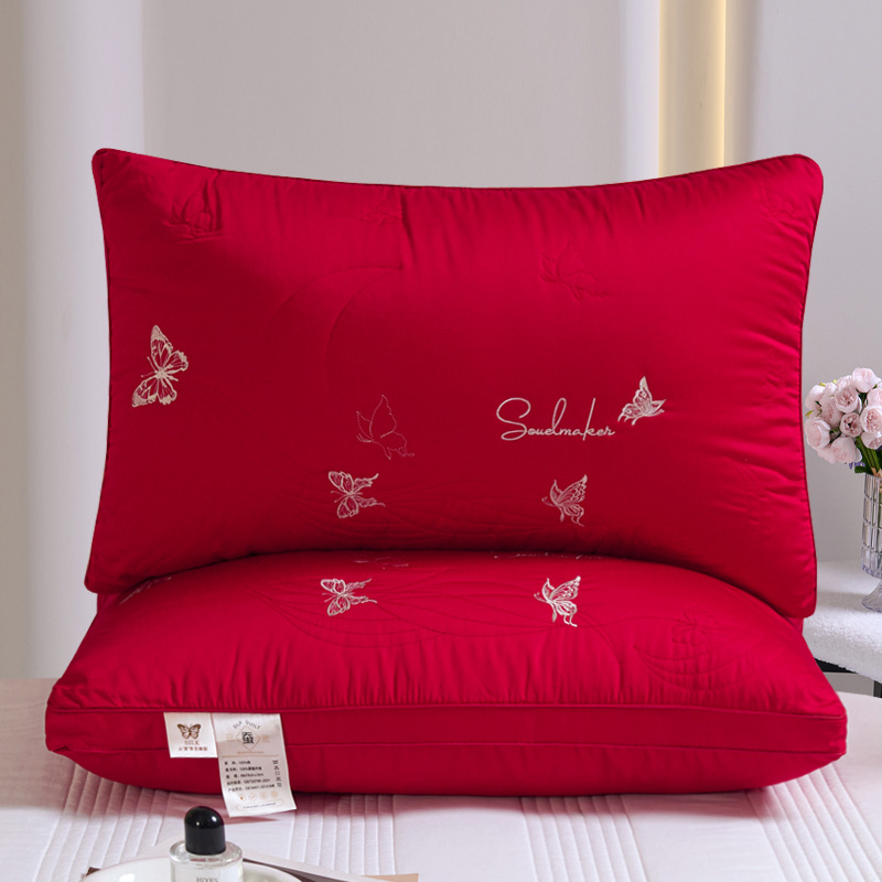 • 면 자수 깃털 실크 베개 나비 베개 빨간색 높은 베개