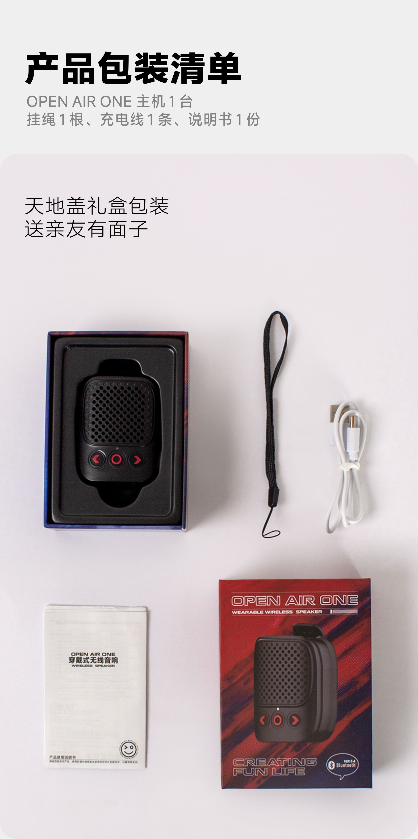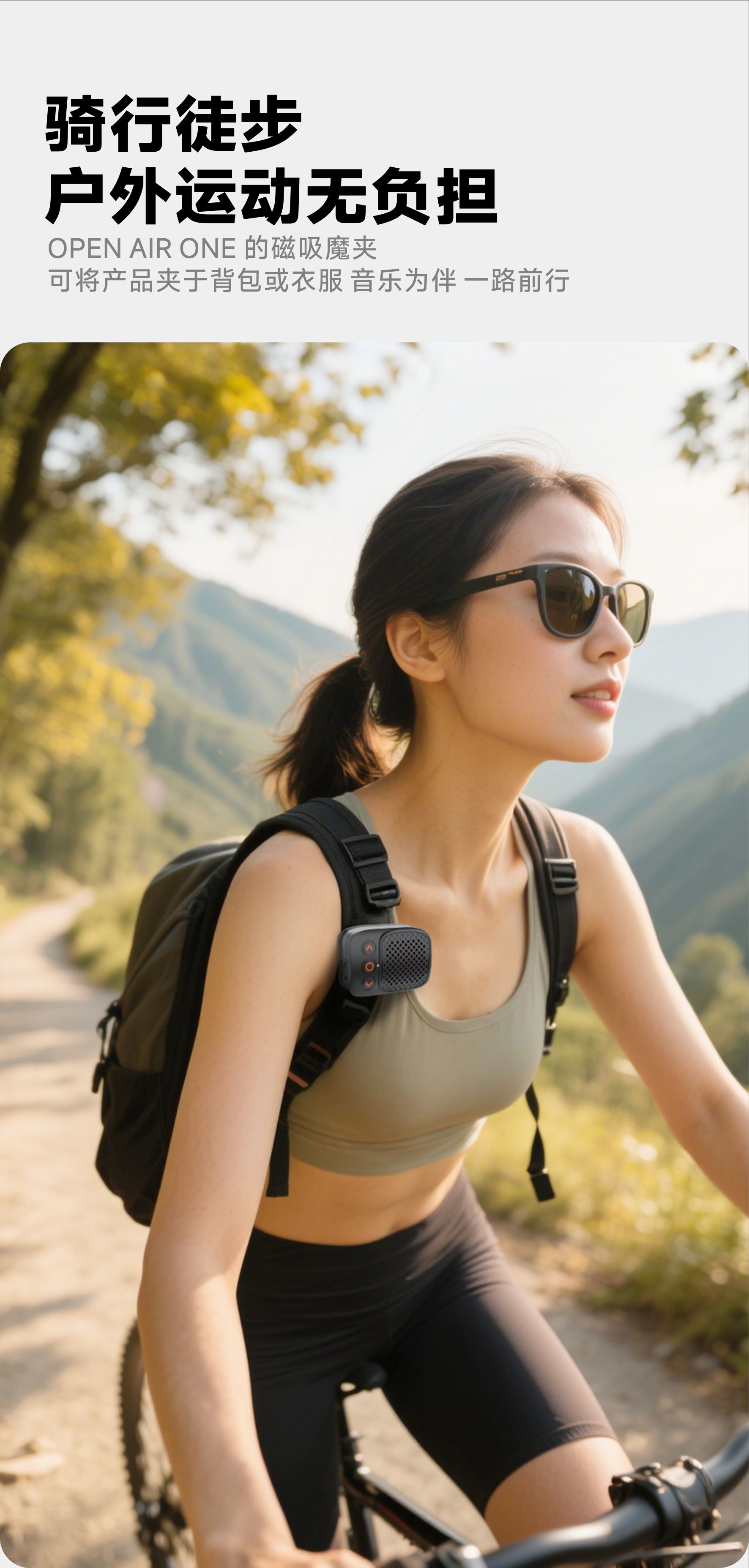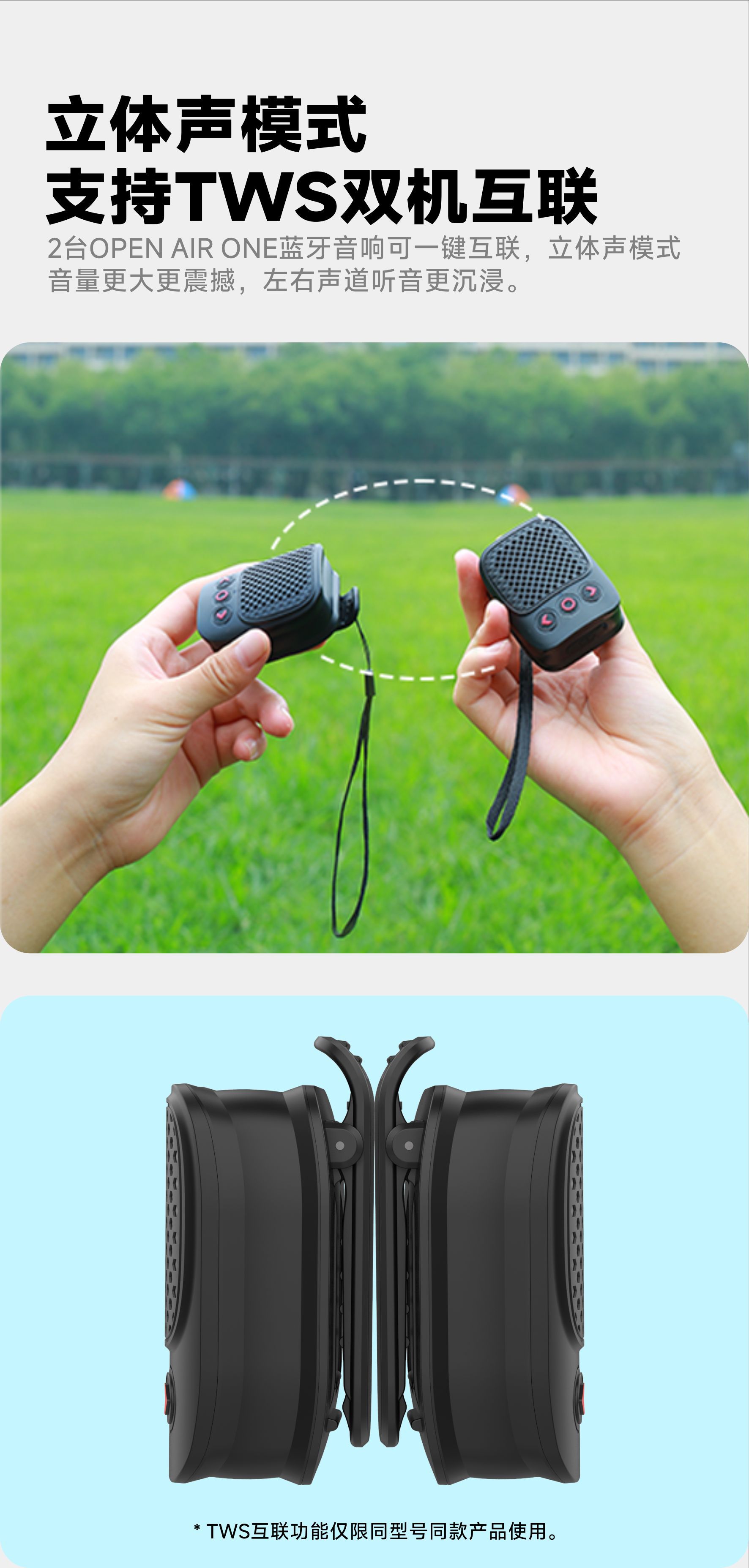 🎵 Wearable OpenAir Sound – Experience rich, clear audio from a compact 80g speaker. OpenAirOne delivers true stereo sound with TWS pairing for immersive music on the go.