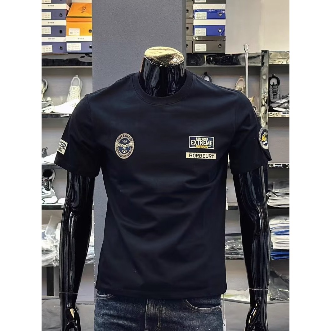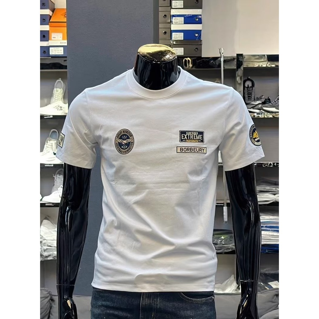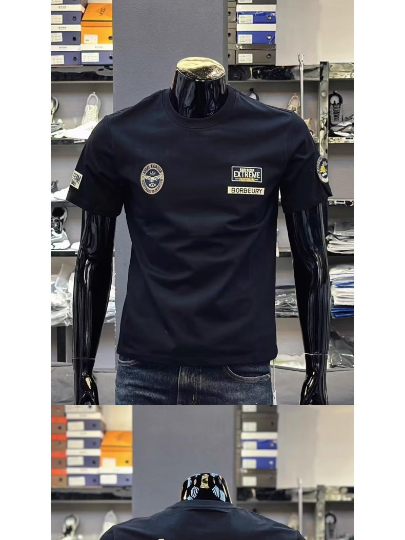 순면 티셔츠 여름 신상 반팔 티셔츠 남성용 라운드넥 다용도 캐주얼 베이직 반팔 레터 프린트 티셔츠 트렌디스토어 가기