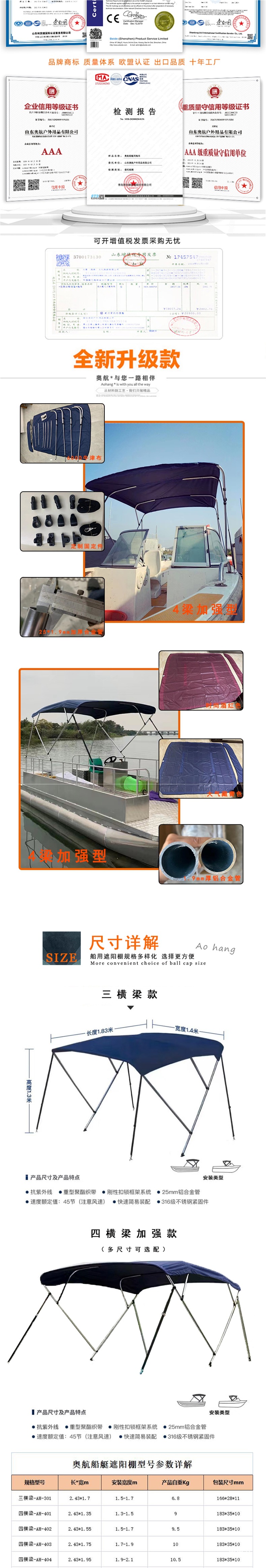 보트 차양막, 낚시 보트 차양막, 스피드 보트, 루어 보트, 요트용 알루미늄 합금 차양막