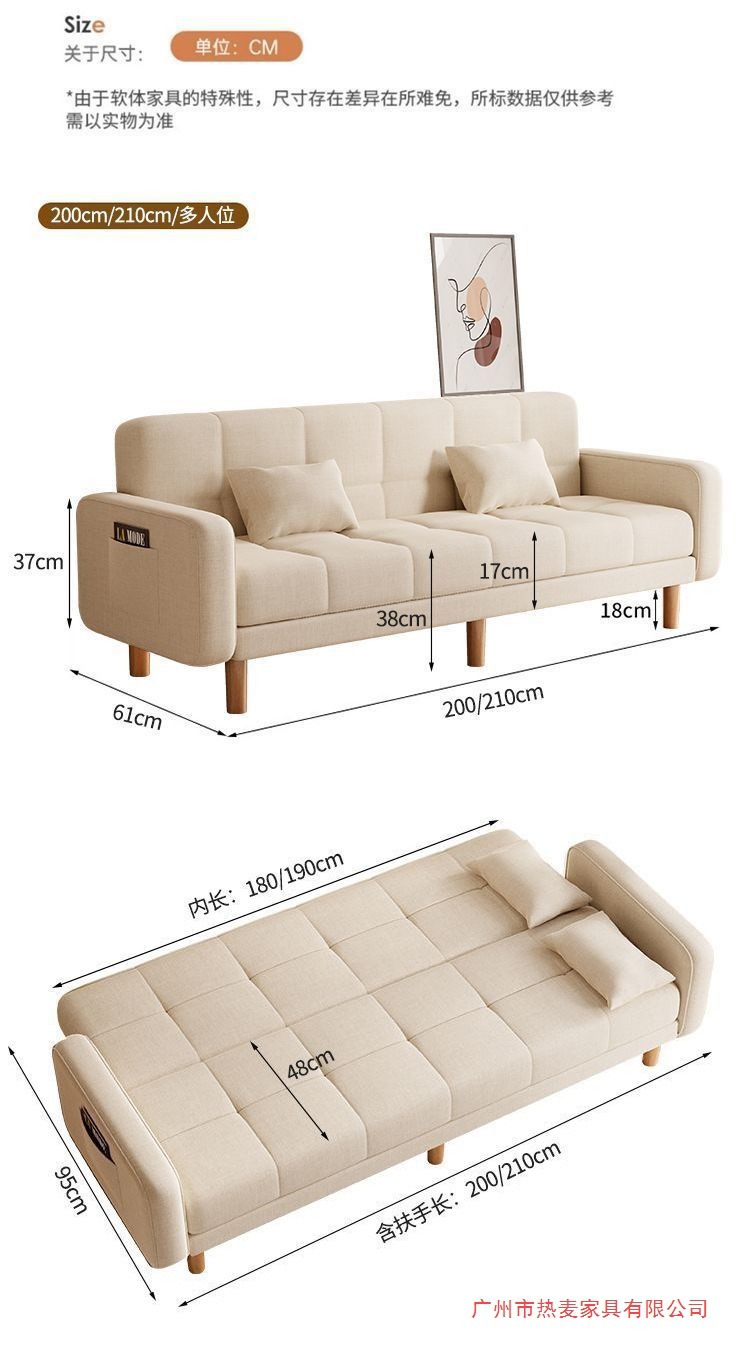 소형 거실용 소파 2025 새로운 스타일의 심플하고 모던한 3인용 임대실 겸용 접이식 소파 베드스토어 가기