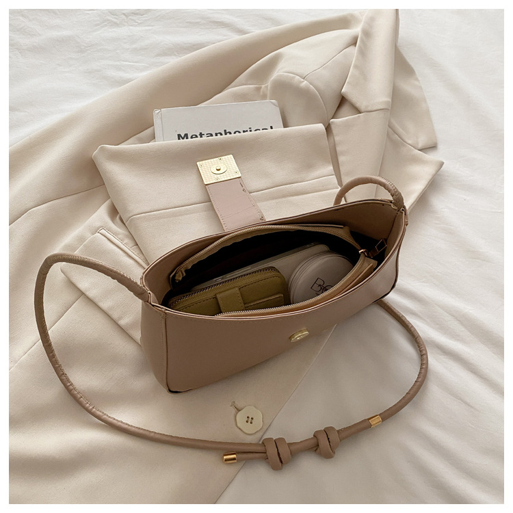 프랑스 질감 인기 가방, 여성용 패션 초승달 가방 2025 새로운 유행 단색 프랑스 틈새 휴대용 크로스 바디 백스토어 가기