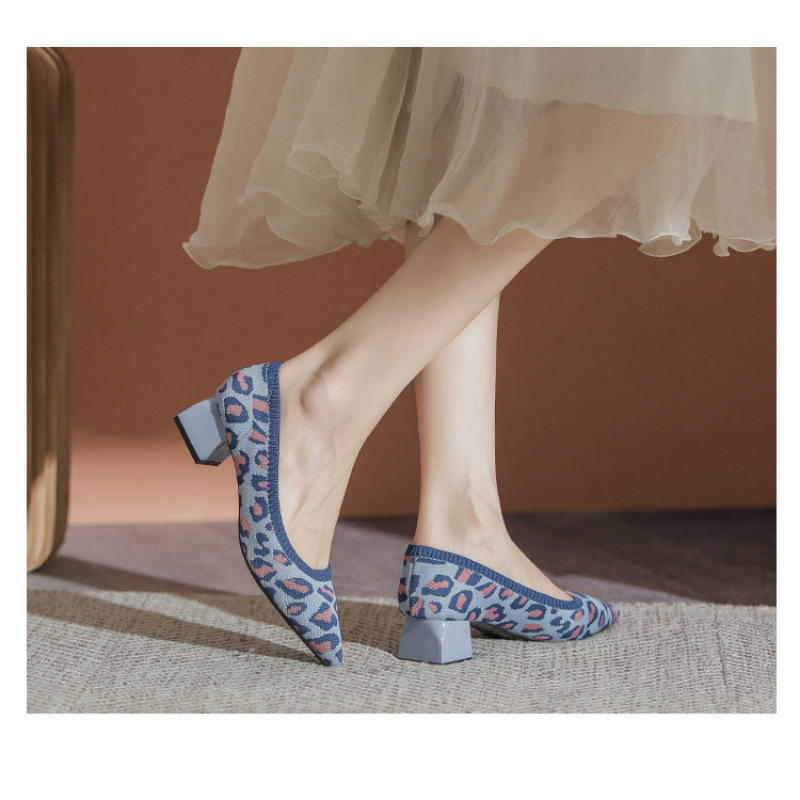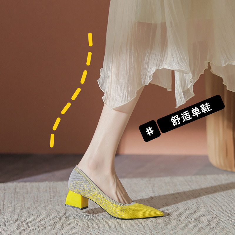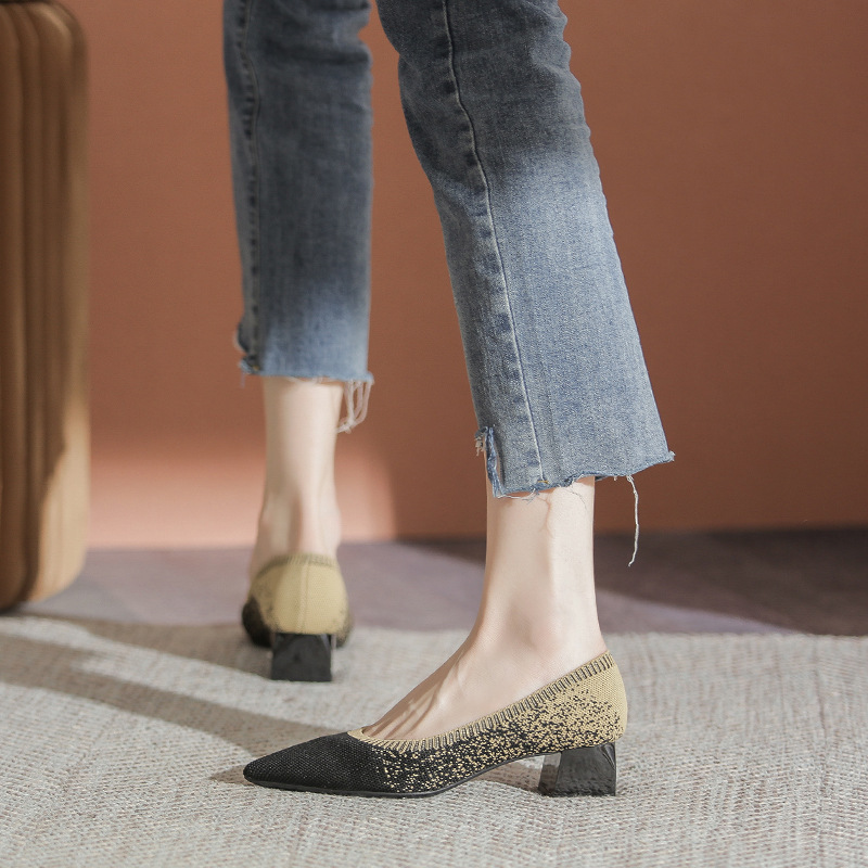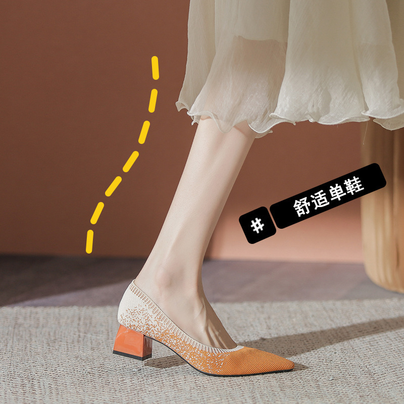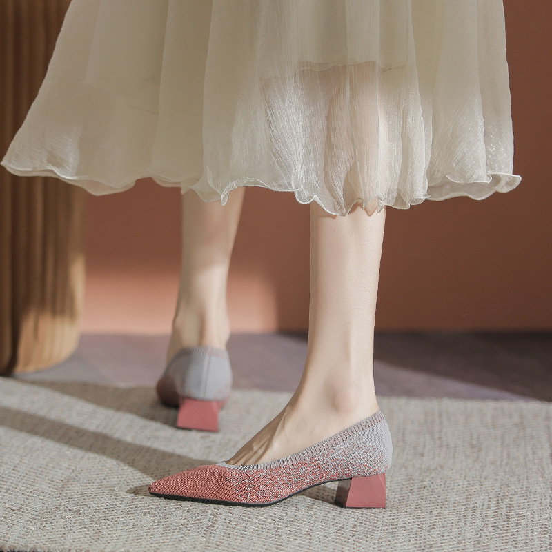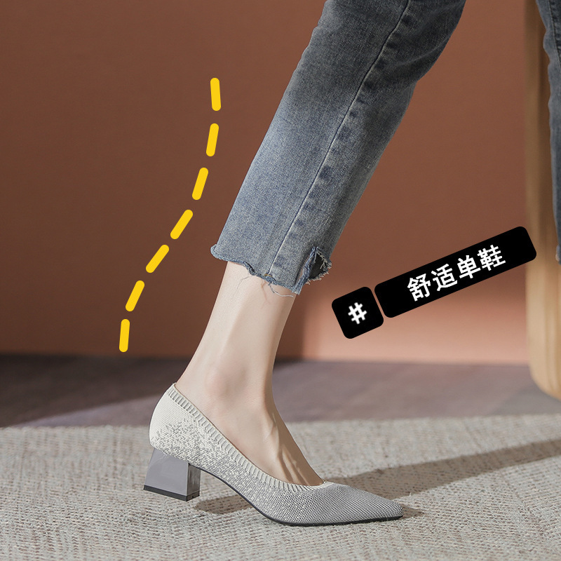 일본 공주 신발 플라이 니트 신발 여성 2024 새로운 다목적 두꺼운 굽 뾰족한 발가락 봄과 가을 니트 신발스토어 가기
