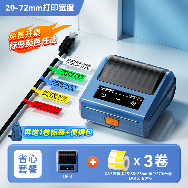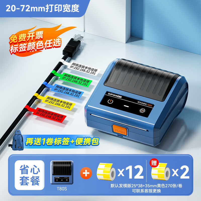 • T80S+는 수평 케이블 라벨 12롤 선택 + 라벨 2롤 + 휴대용 가방 제공(주문 시 1롤 무료, 사진 게시 시 1롤 무료)