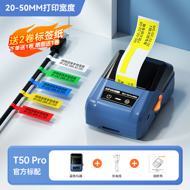 • T50pro+단일 행 케이블 라벨 2롤+라벨 2롤 무료(주문 시 1롤 무료, 사진 게시 시 1롤 무료)