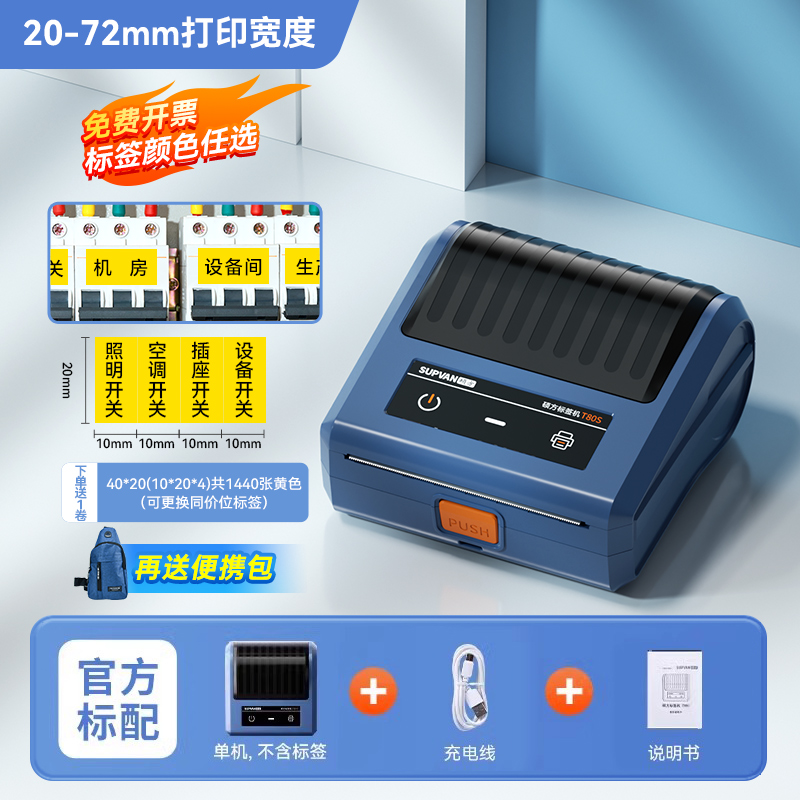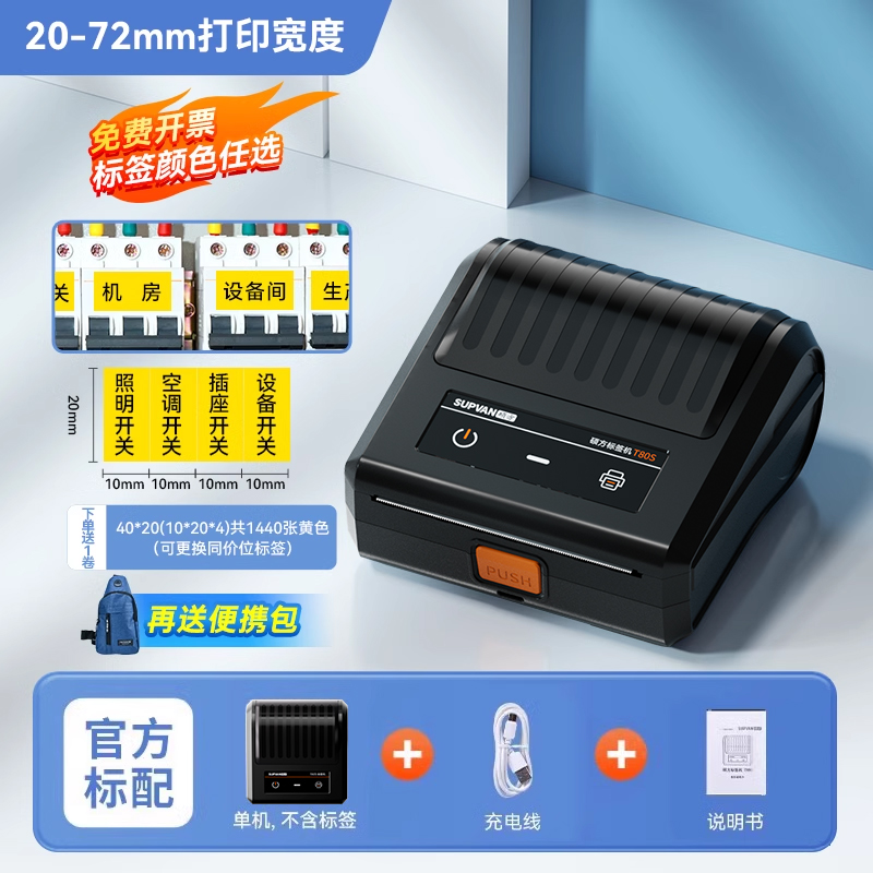 • T80S + 수평 케이블 라벨 1롤 + 무료 라벨 2롤 + 휴대용 가방(주문 시 1롤 무료, 사진 게시 시 1롤 무료)