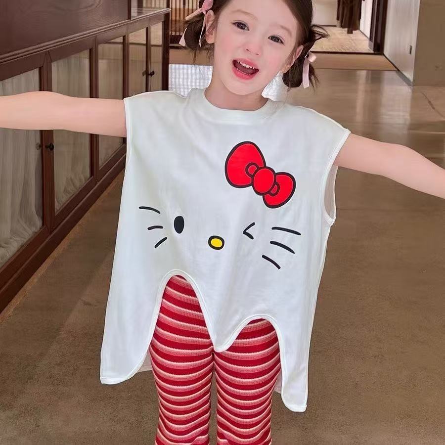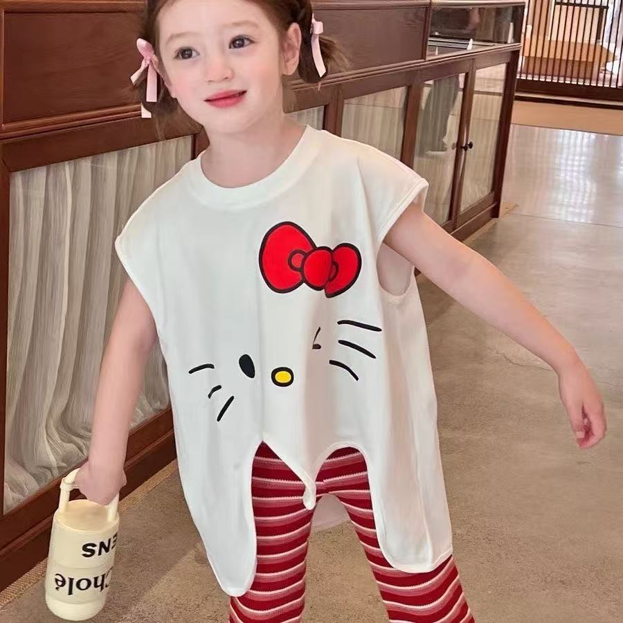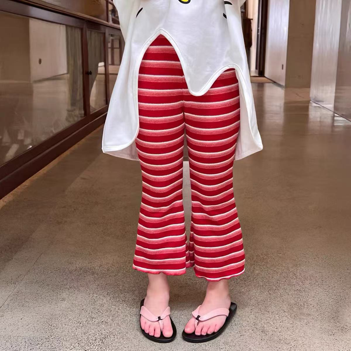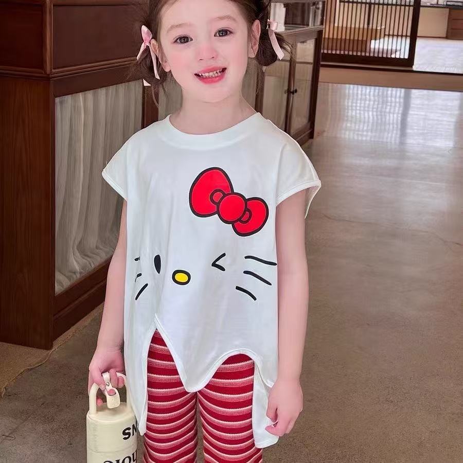 2025 새로운 여자 여름 정장 아기 불규칙한 느슨한 탑 스트라이프 바지 어린이 유행 투피스 세트
