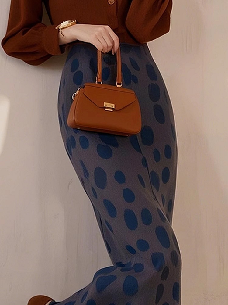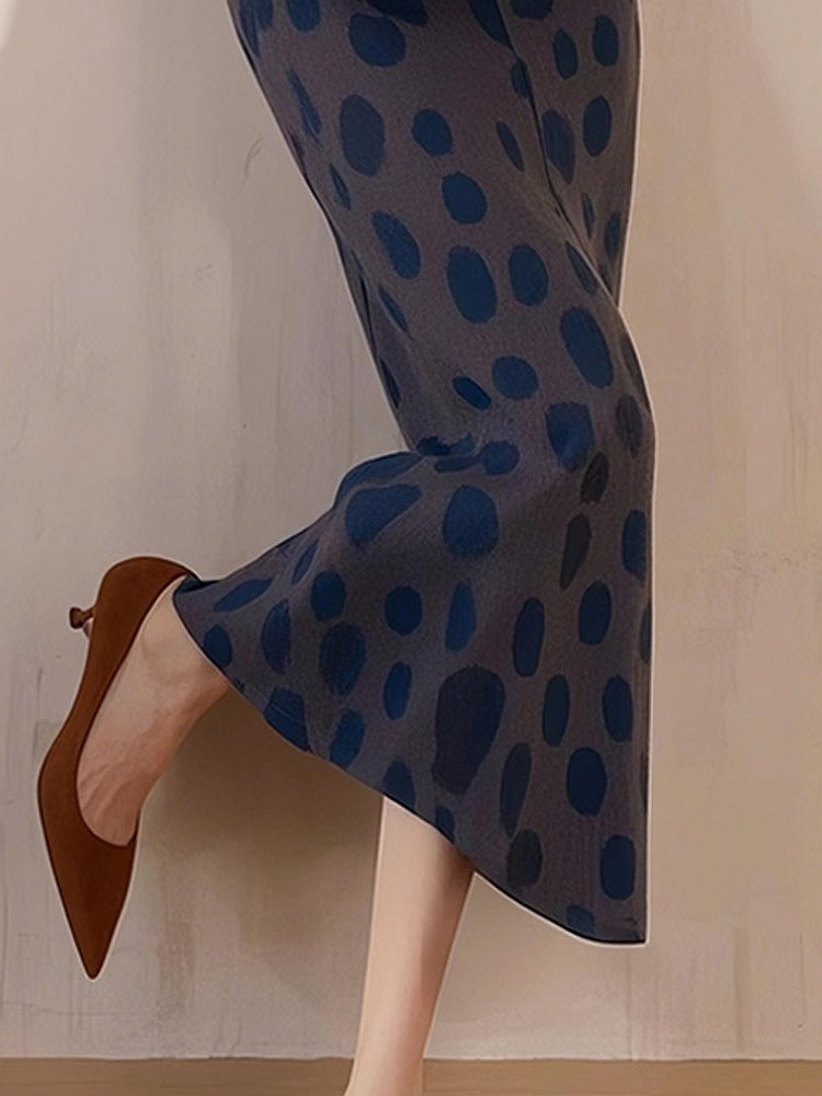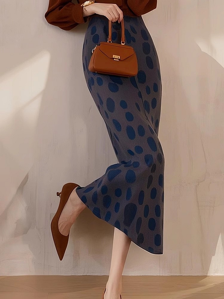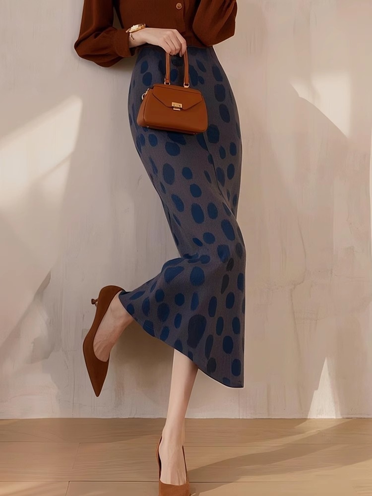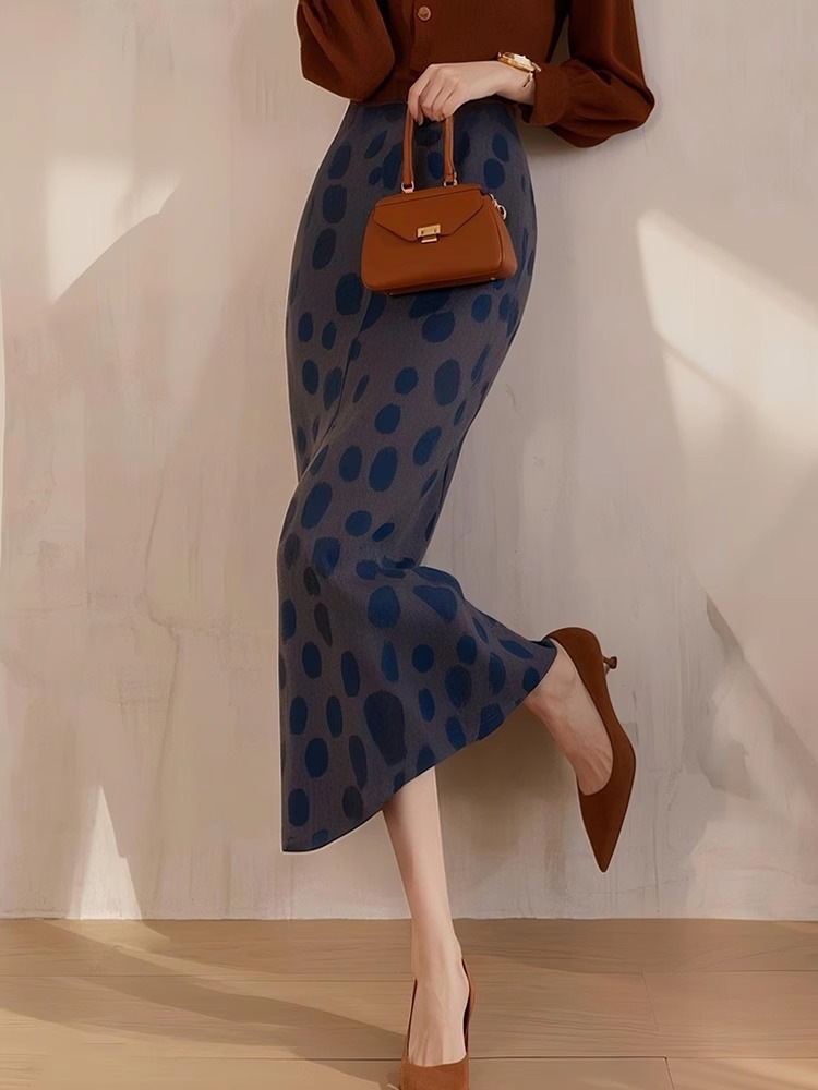 Dian Dian 2025 봄 신상 유럽 복고 햅번 스타일 하이웨이스트 다용도 슬리밍 캐주얼 블루 폴카 도트 스커트 여성용스토어 가기