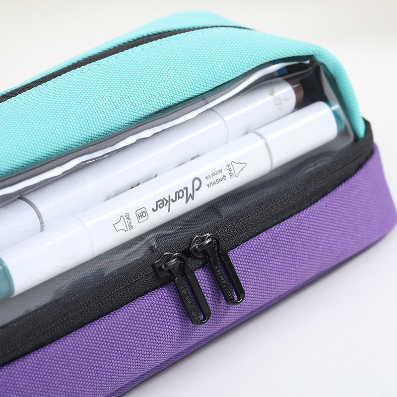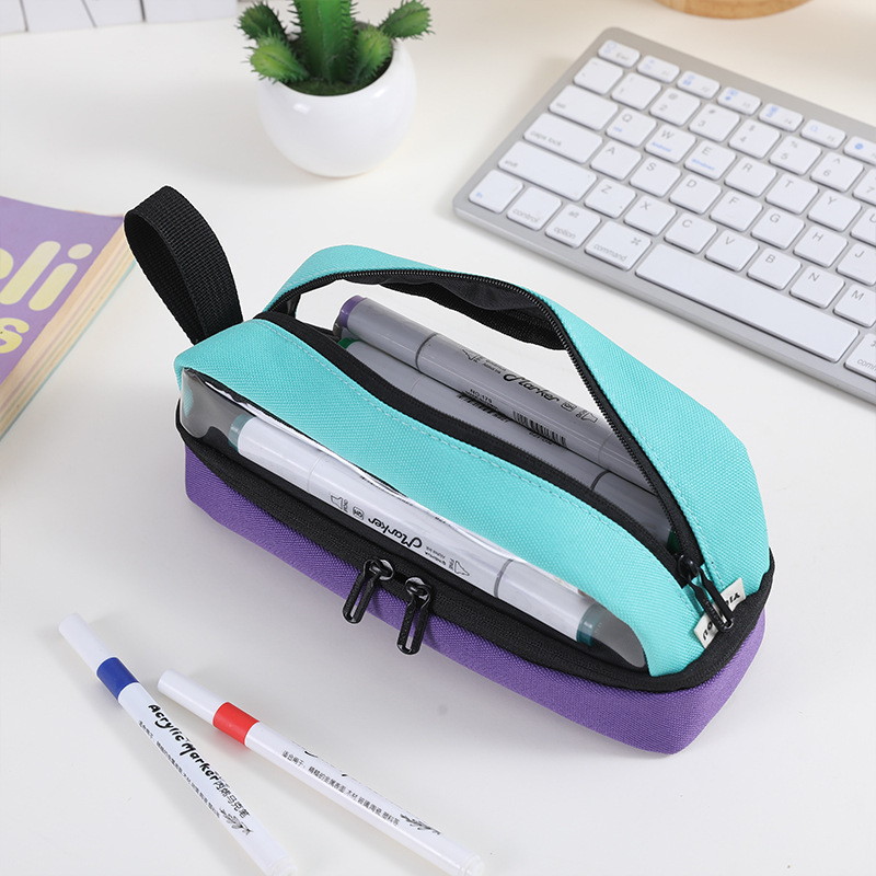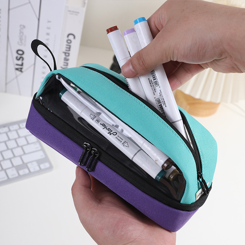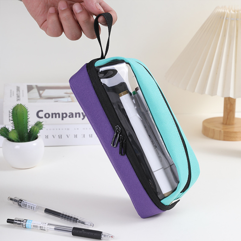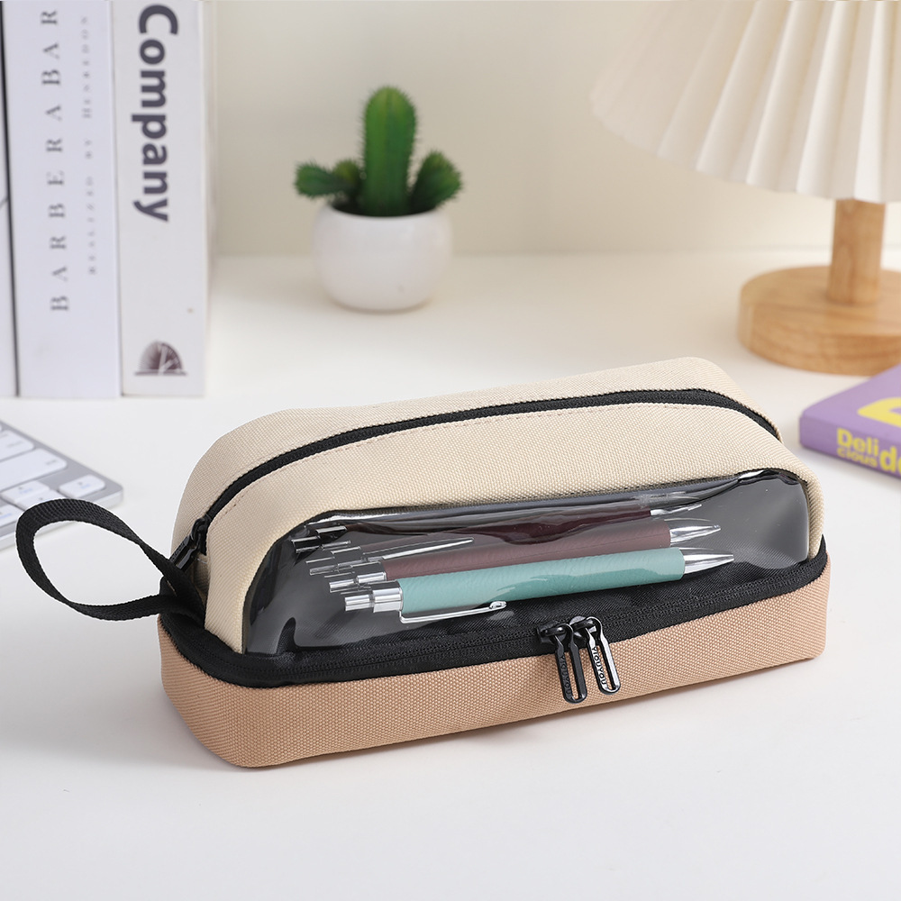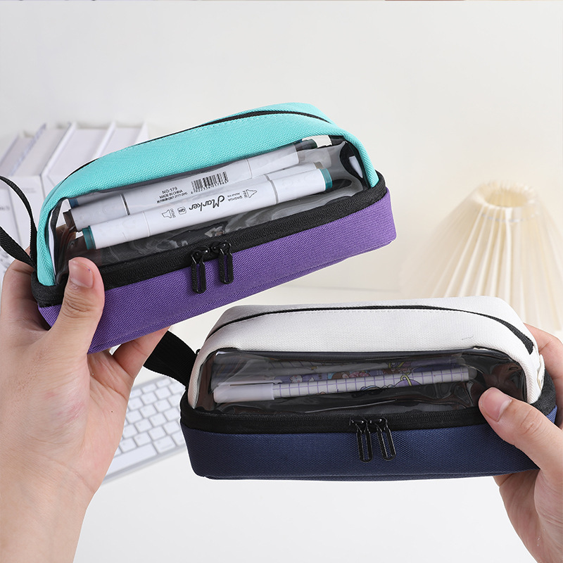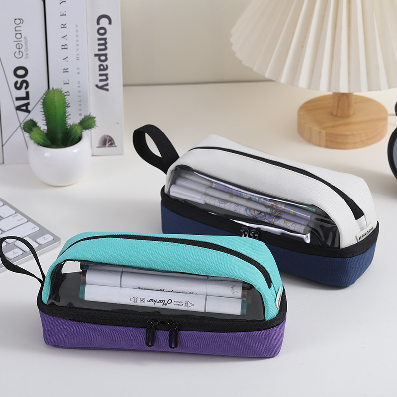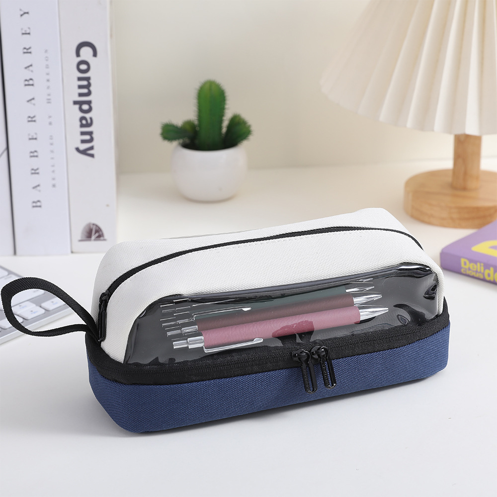 새로운 대용량 사각형 문구 가방, 남학생용 투명 심플 학생용 도매 고급스러운 펜 수납 문구