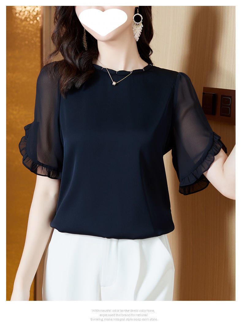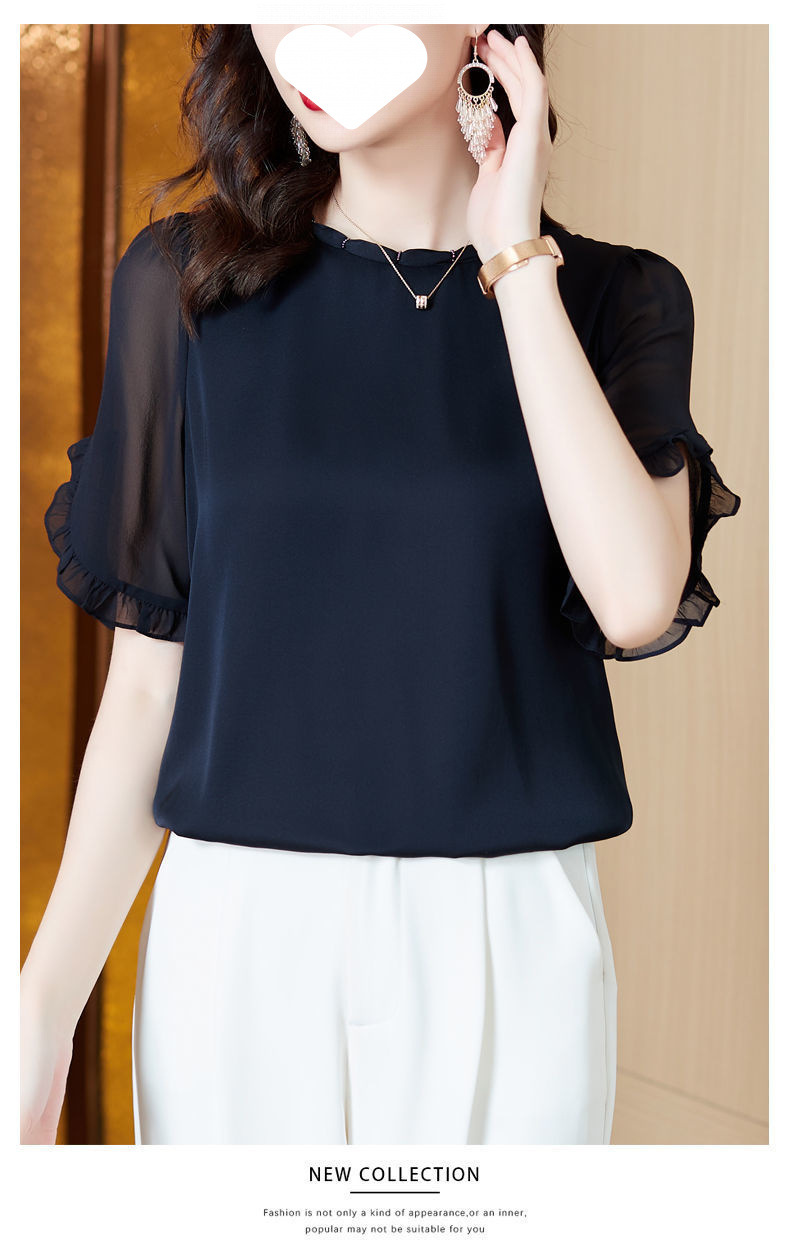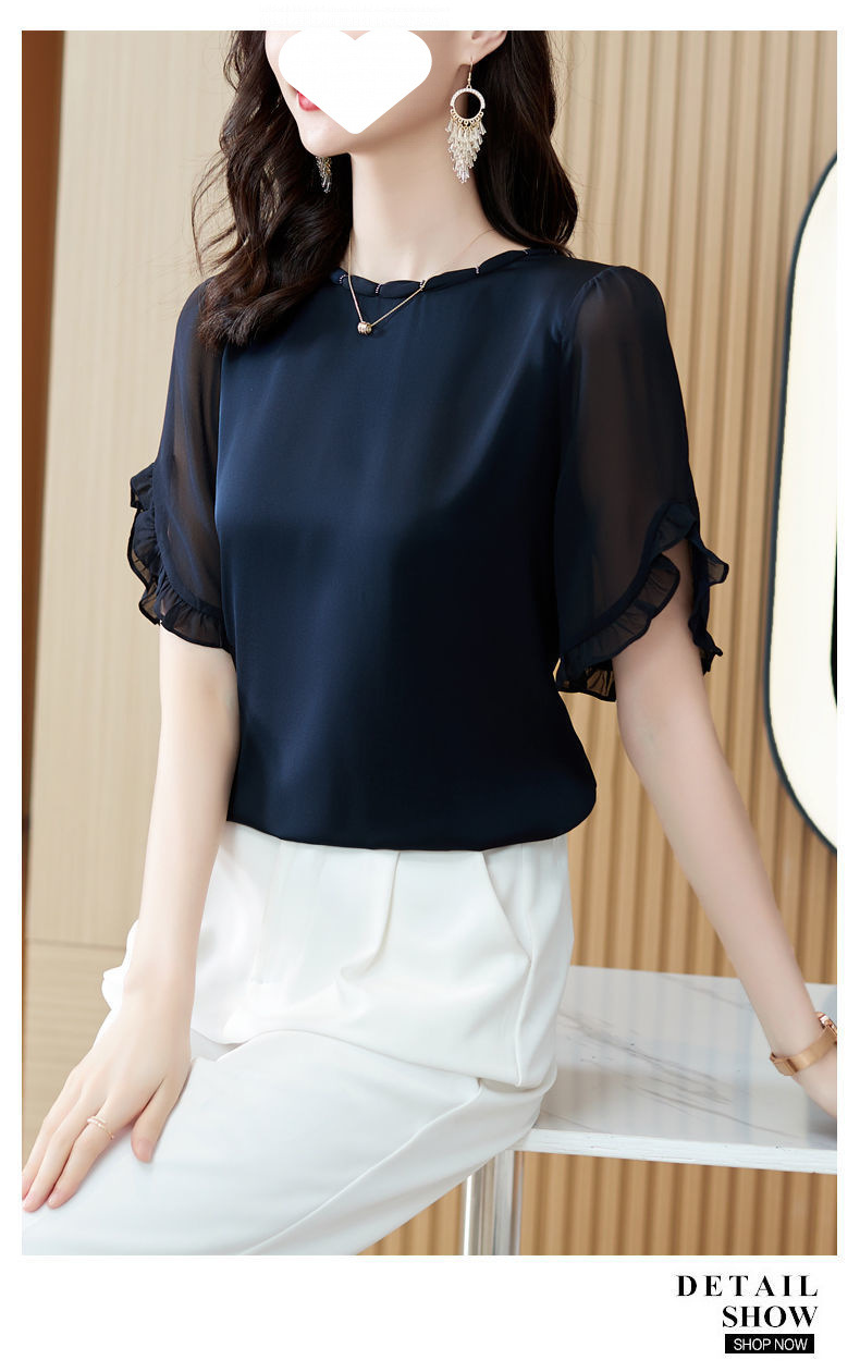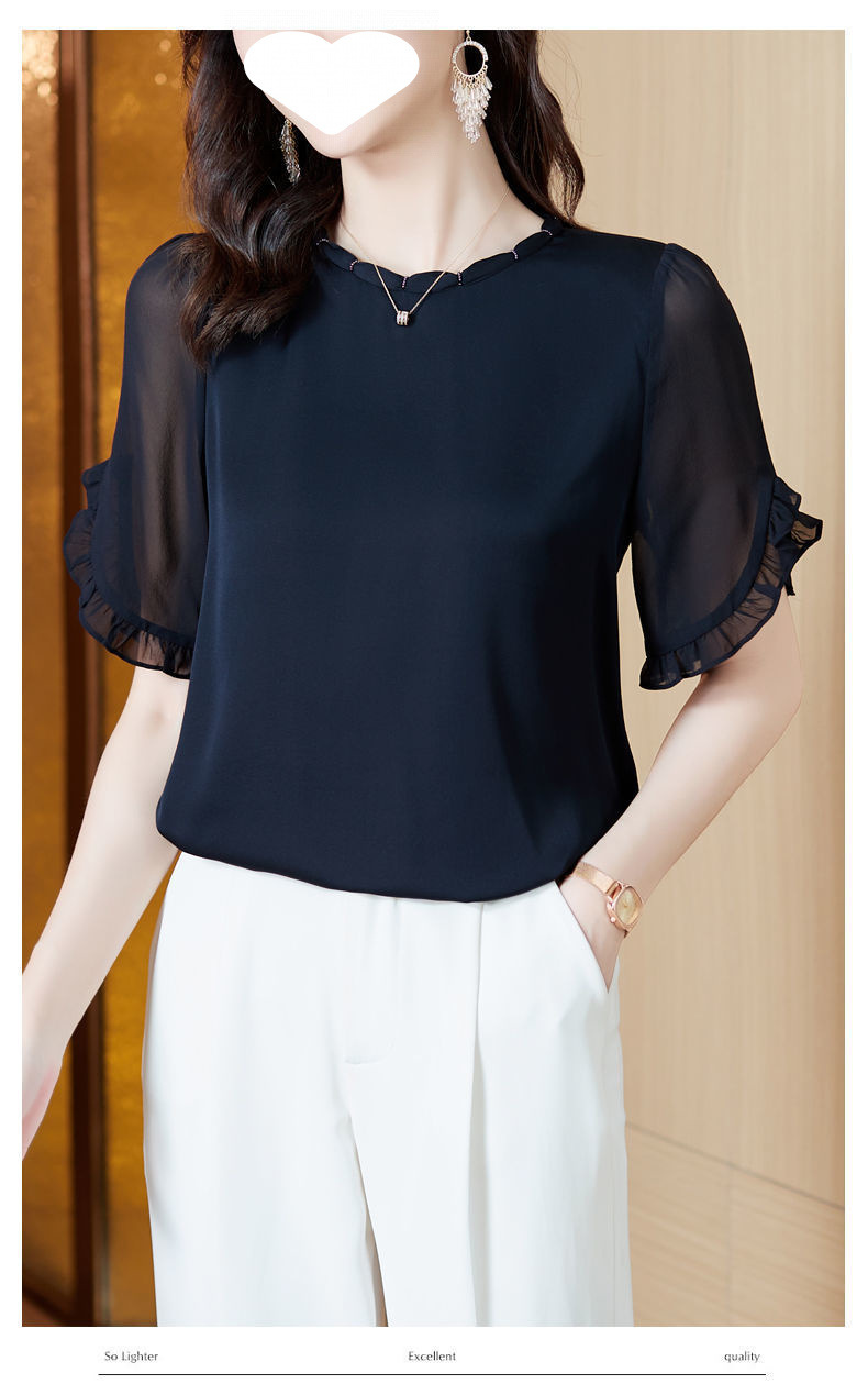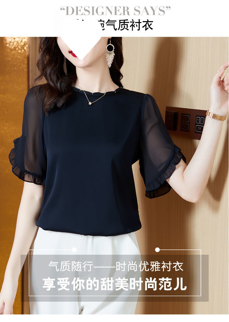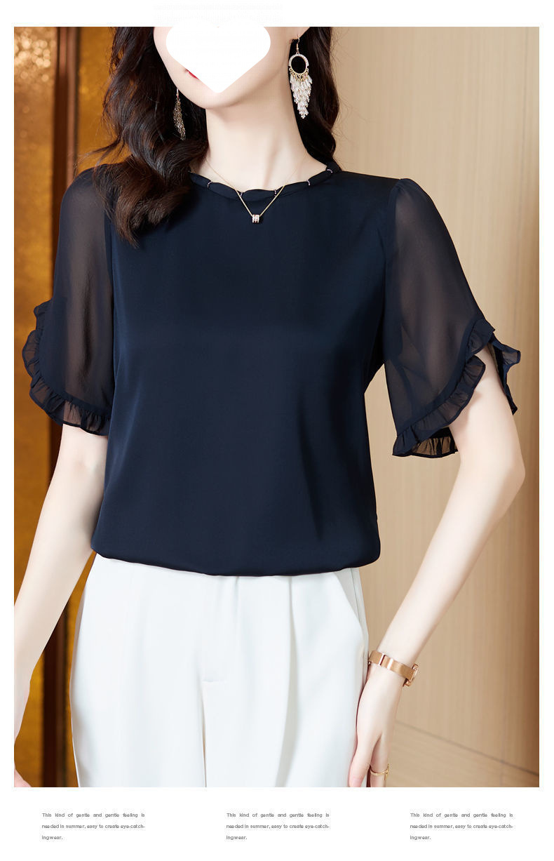 Q7N 쉬폰 셔츠 여성용 2025 여름 신상 패션 반팔 러플 비즈 장식스토어 가기