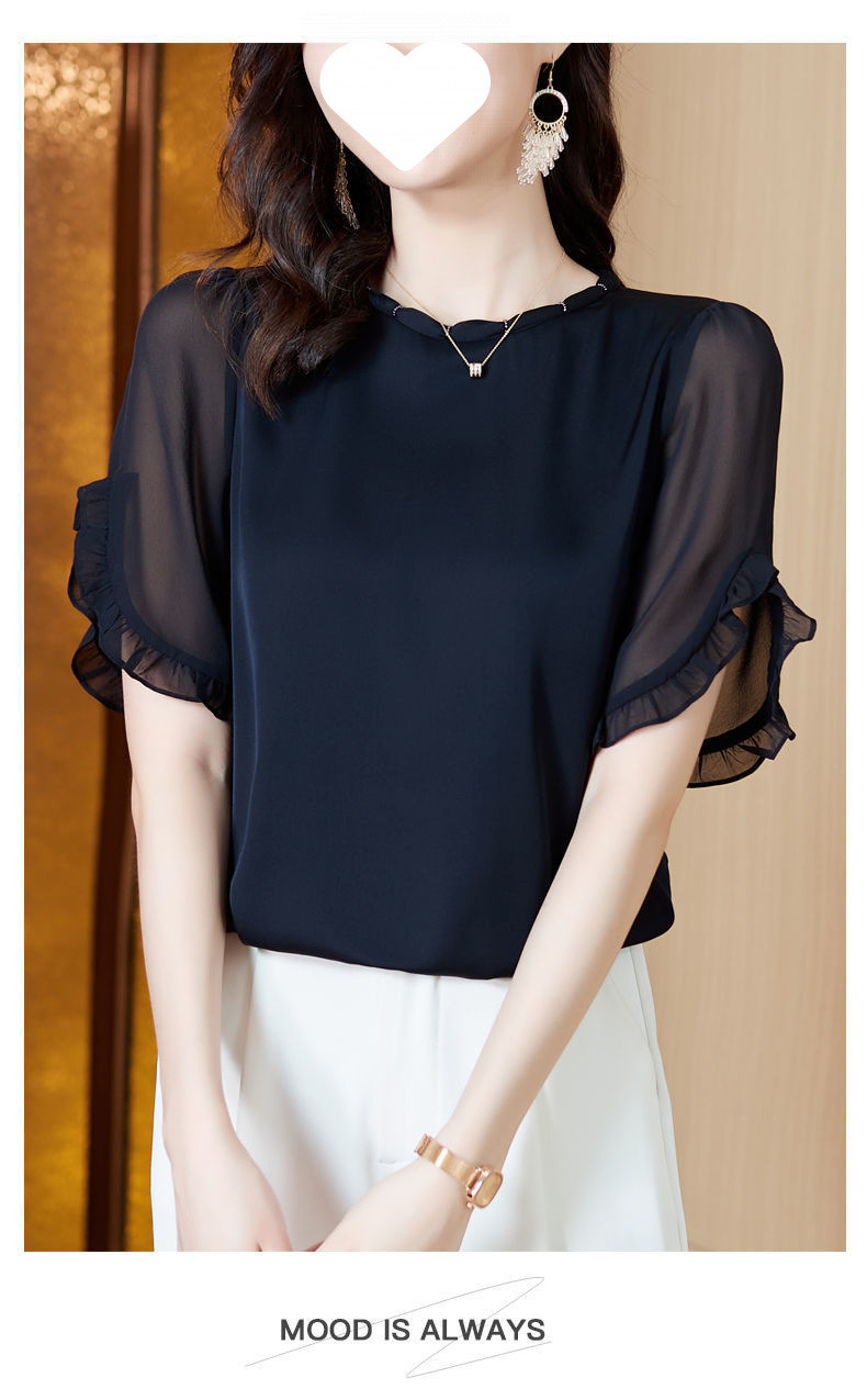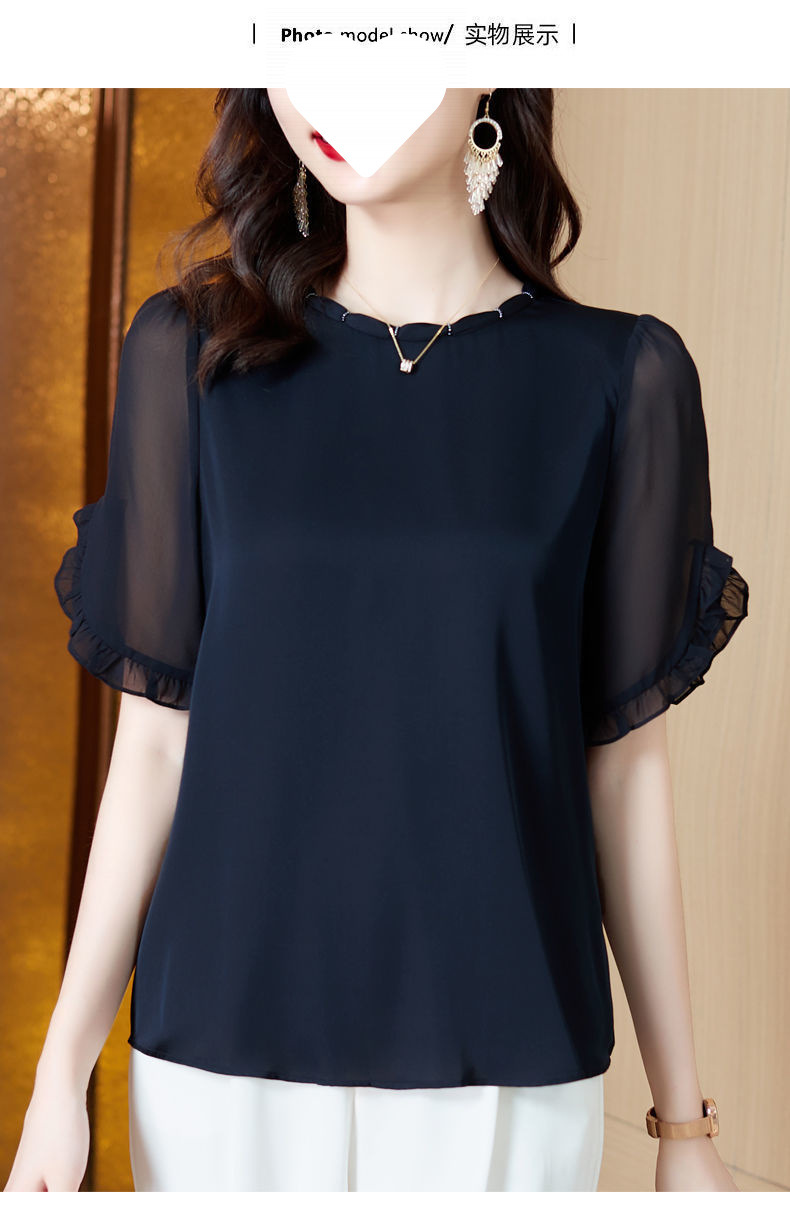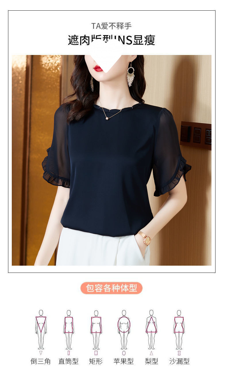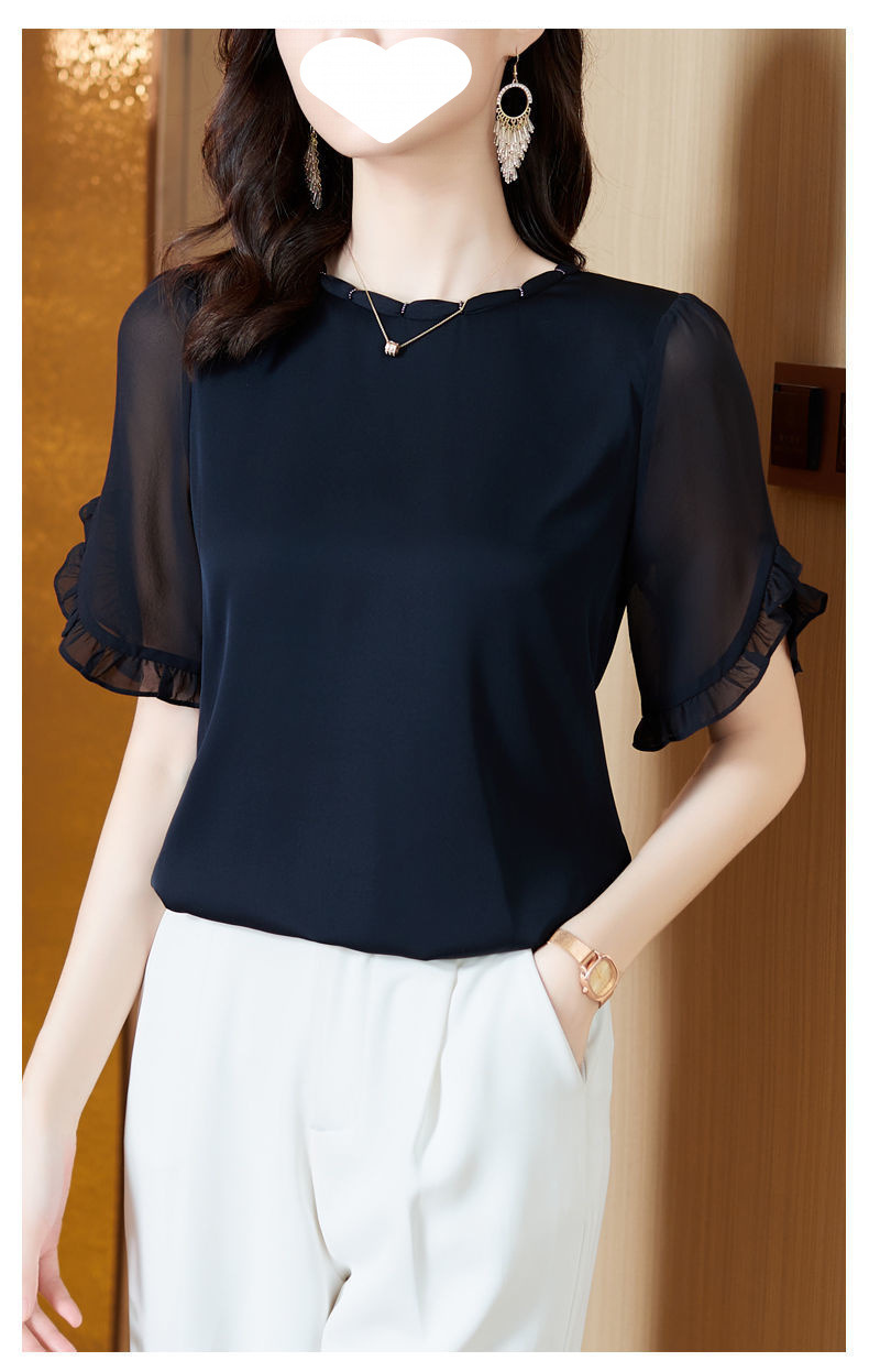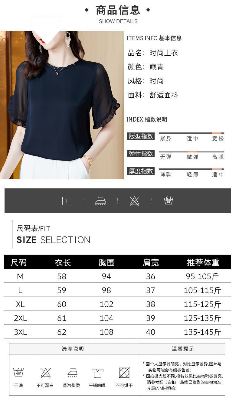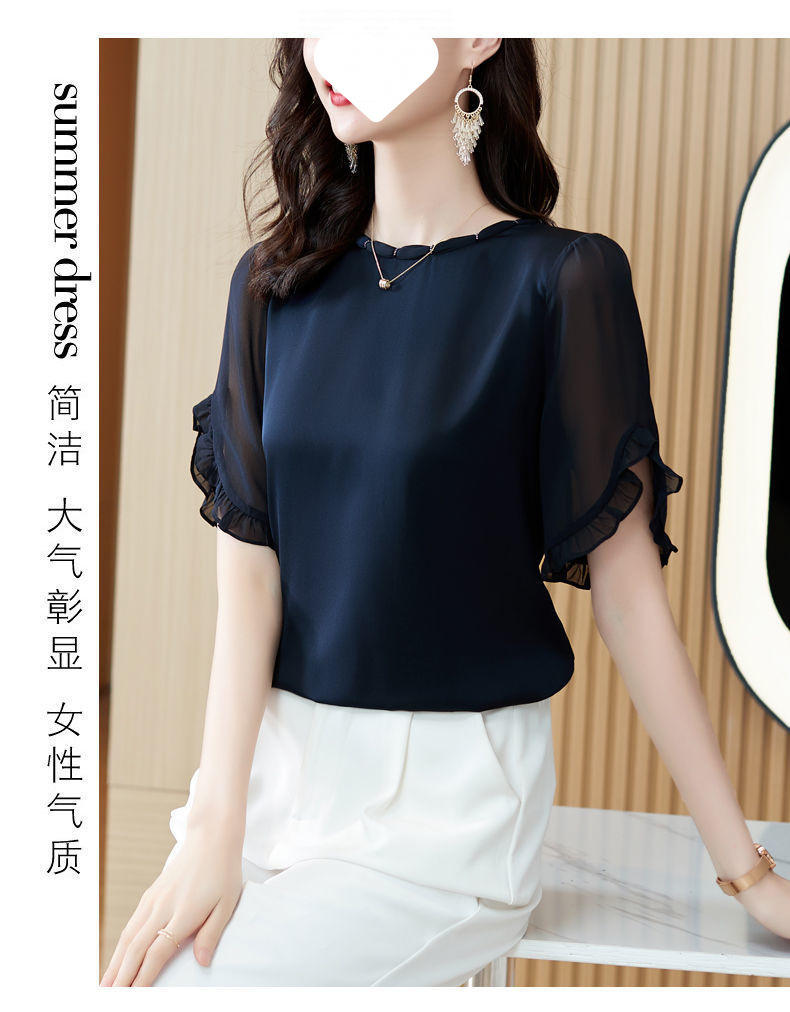 Q7N 쉬폰 셔츠 여성용 2025 여름 신상 패션 반팔 러플 비즈 장식스토어 가기