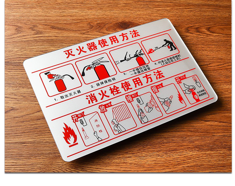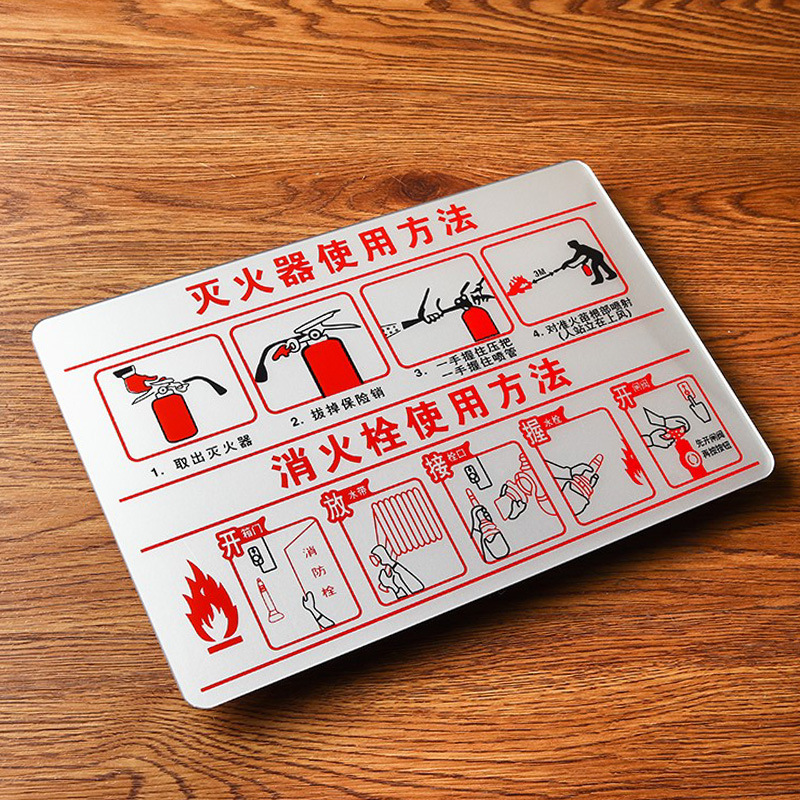 소화기 및 소화전 사용법 안내 표지판 알루미늄 합금 표지판 경고 표지판 자가 접착 소화기 표지판