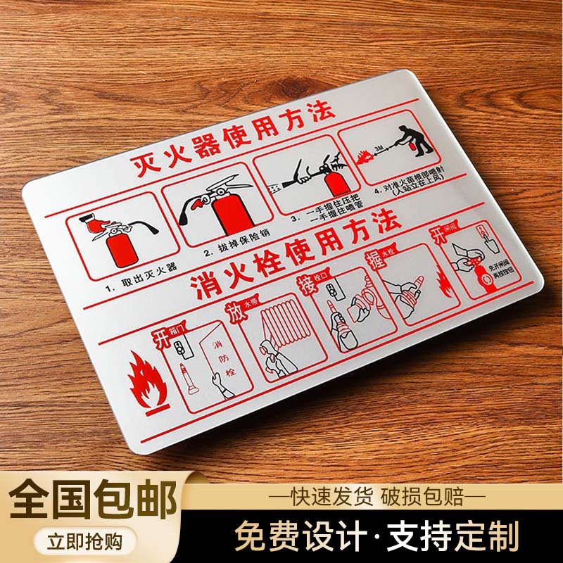 소화기 및 소화전 사용법 안내 표지판 알루미늄 합금 표지판 경고 표지판 자가 접착 소화기 표지판스토어 가기