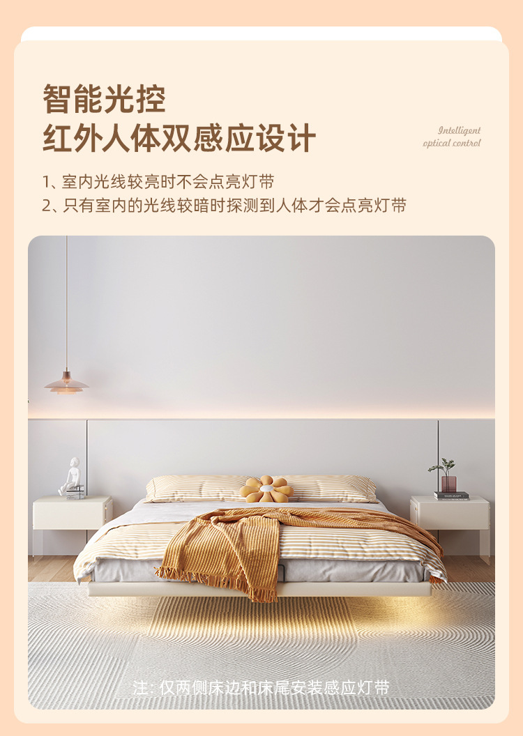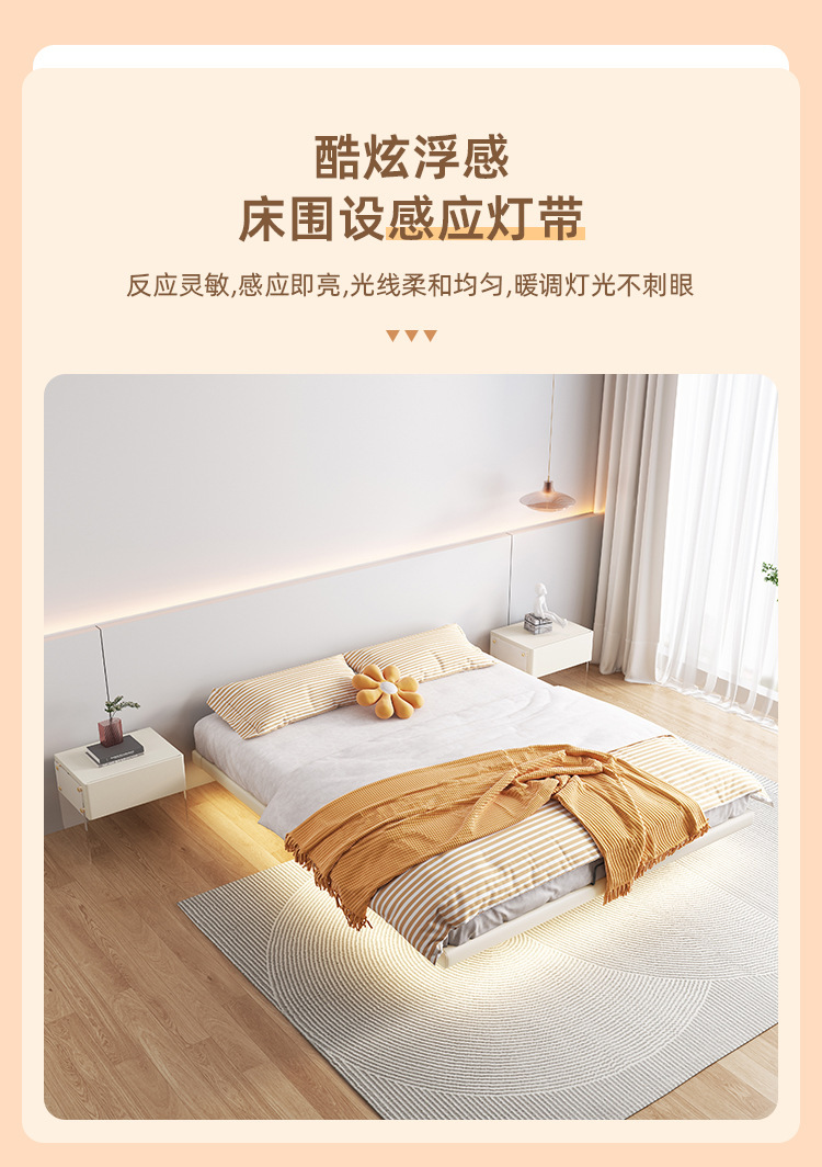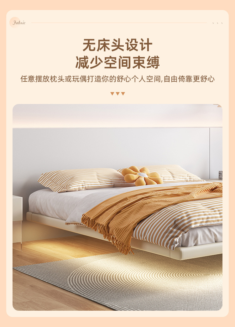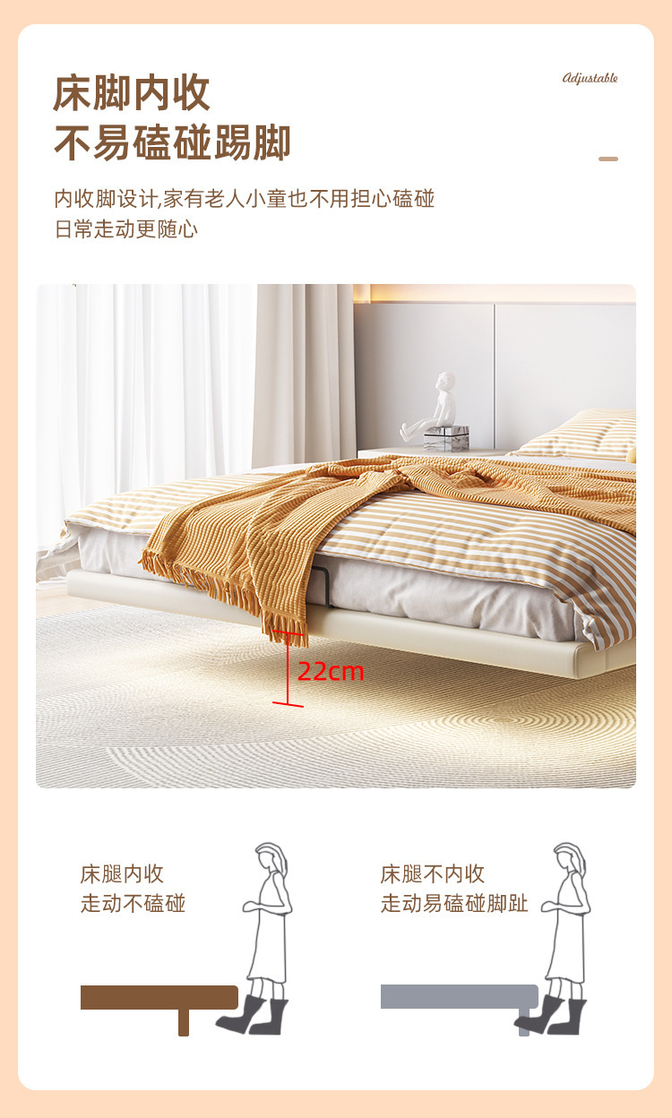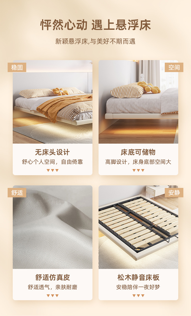 현대적인 미니멀리스트 B&B 호텔 고양이 스크래치 가죽 침대 인터넷 연예인 ins 와비사비 스타일 더블 등받이 없는 공중에 뜨는 소프트 침대스토어 가기