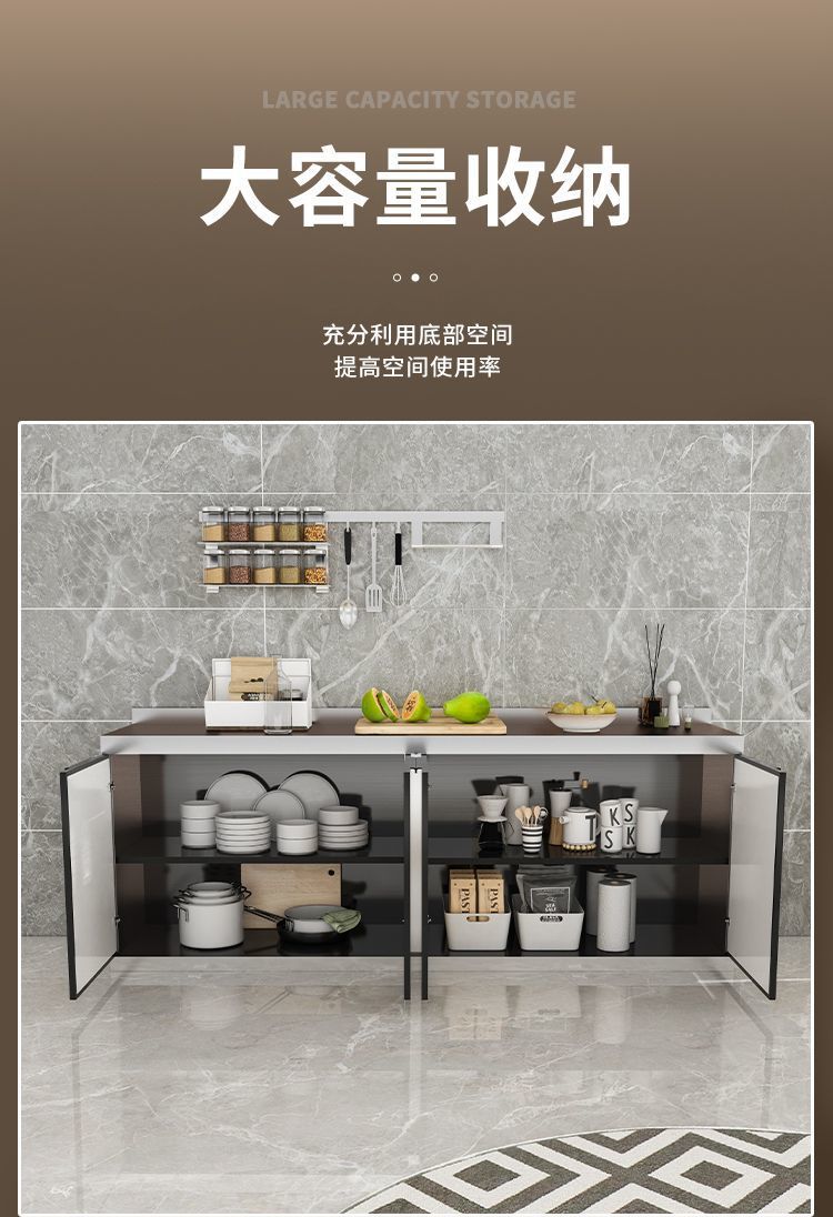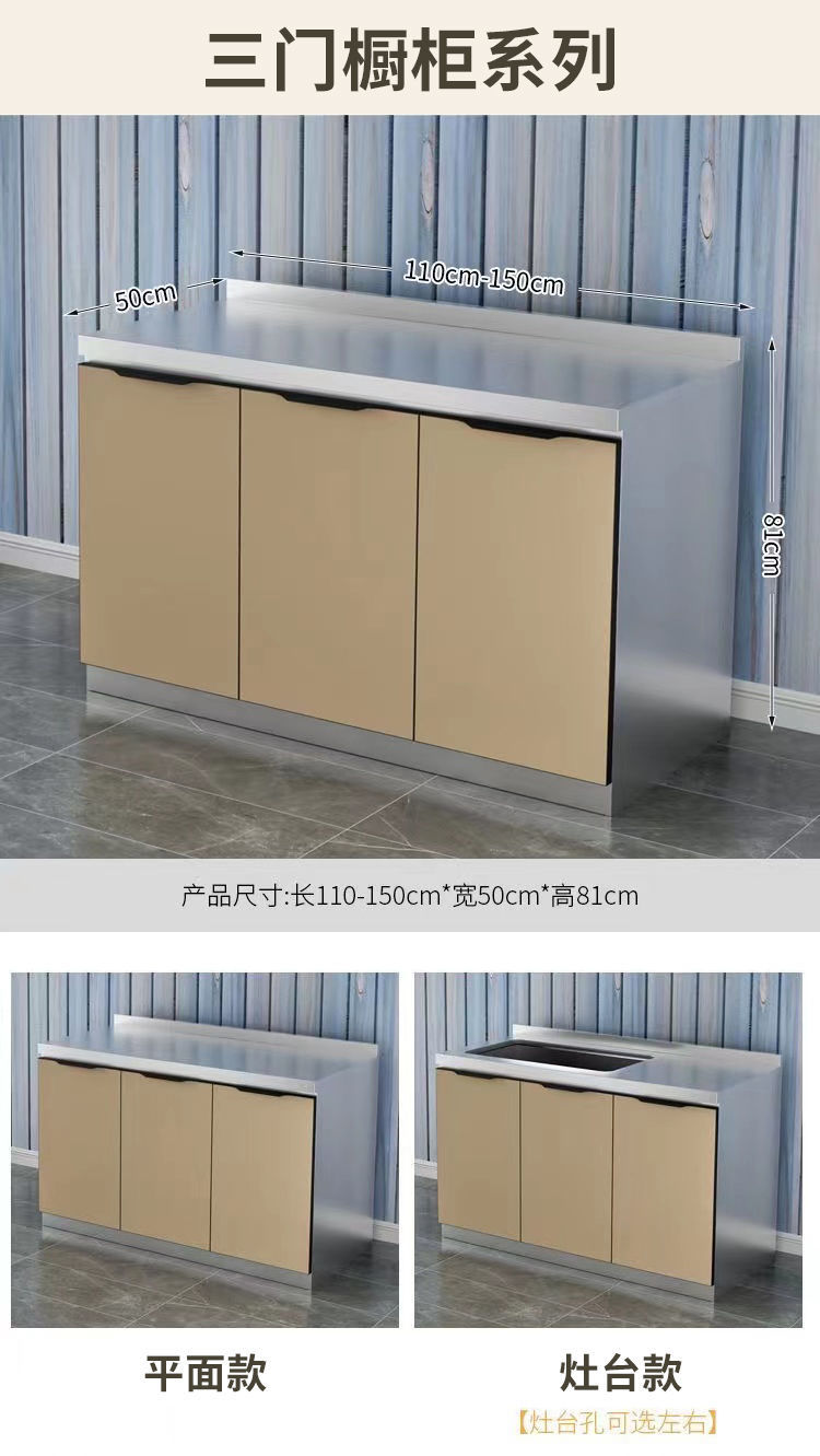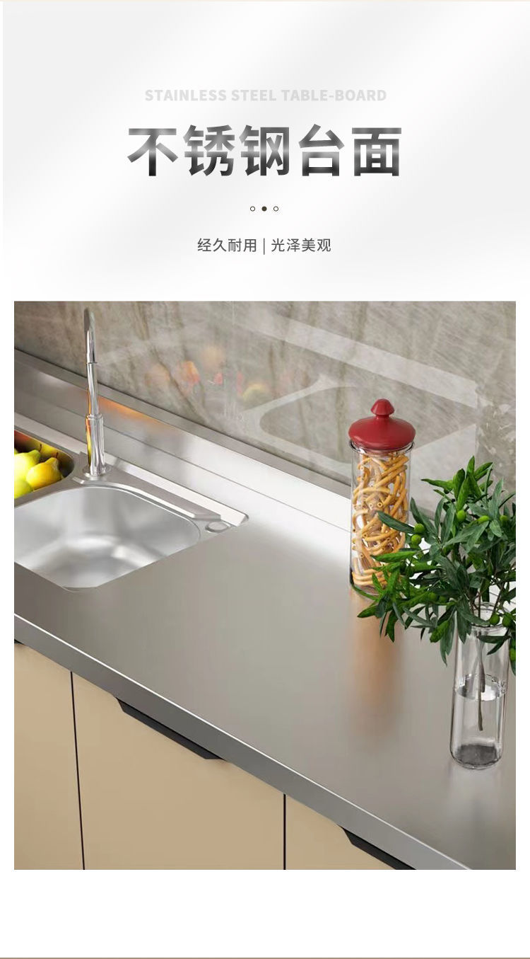 스테인레스 스틸 가정용 간이 스토브 싱크대 전체 강철 통합 스토리지 찬장 조립 경제적 인 주방 캐비닛 스토리지 캐비닛