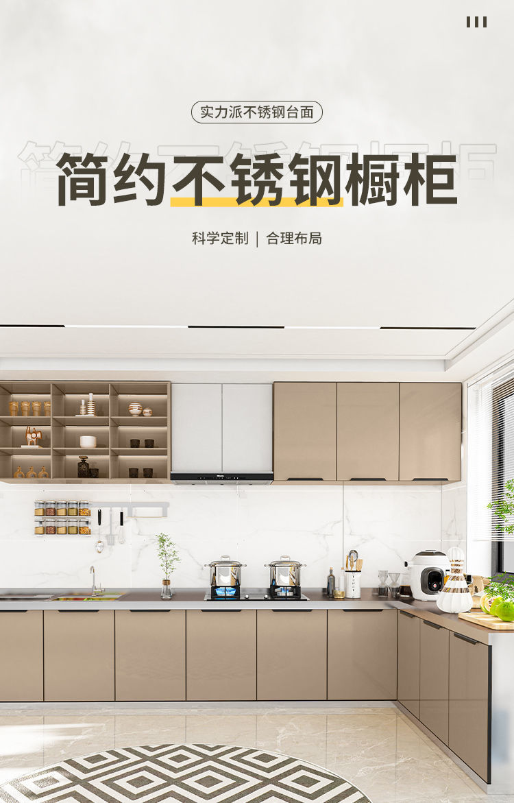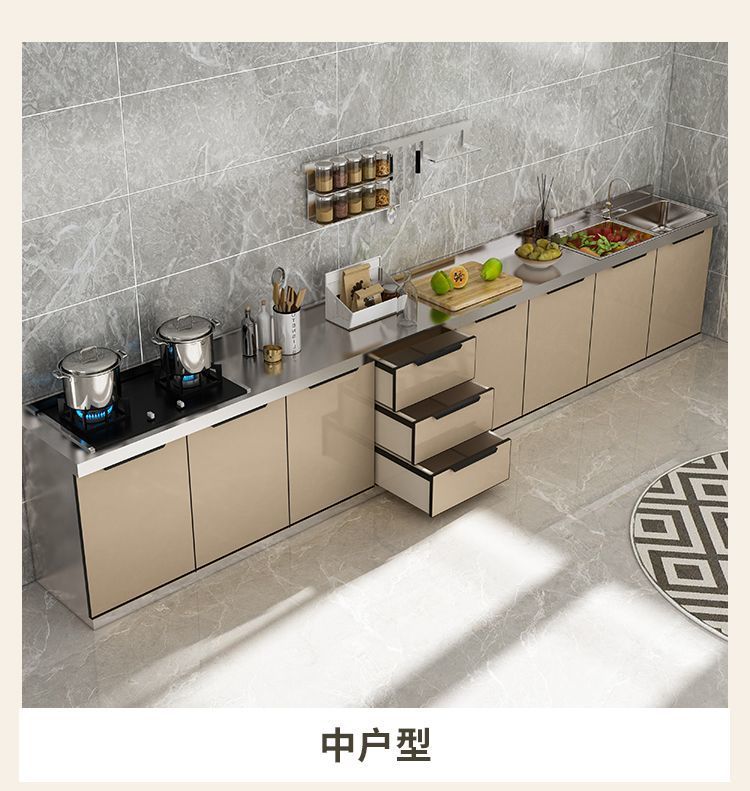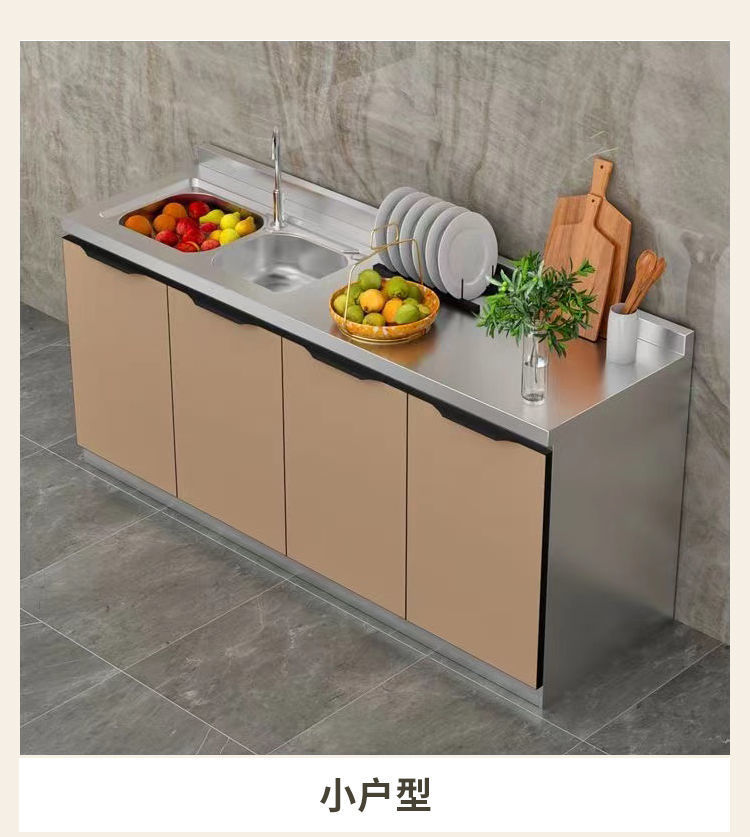 스테인레스 스틸 가정용 간이 스토브 싱크대 전체 강철 통합 스토리지 찬장 조립 경제적 인 주방 캐비닛 스토리지 캐비닛스토어 가기