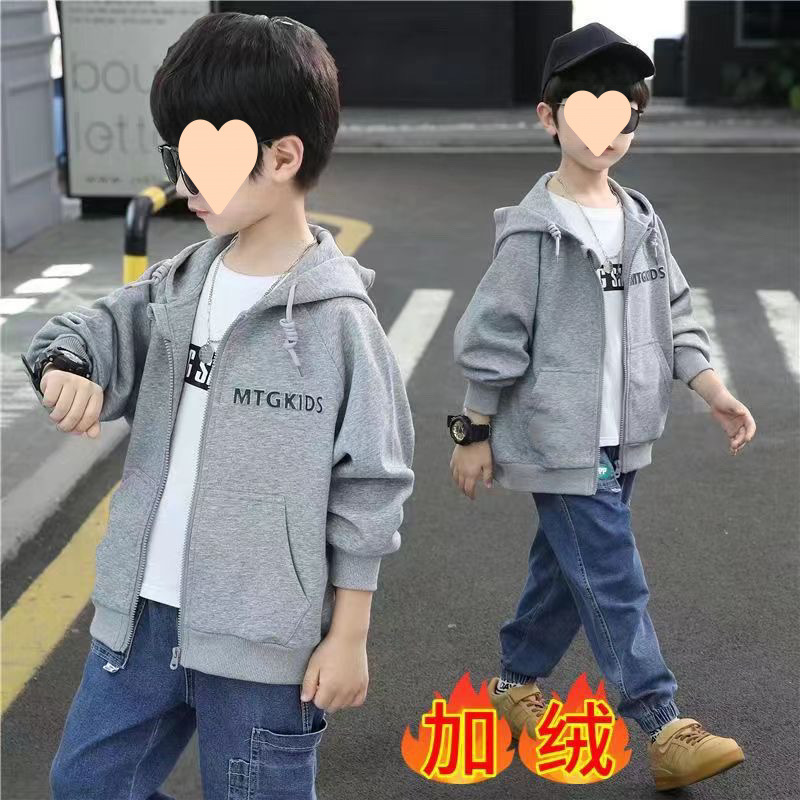 봄과 가을 소년의 새로운 지퍼 카디건 아동 코트 플러스 벨벳 잘 생긴 스포츠 따뜻한 겉옷 새로운 유행상의스토어 가기