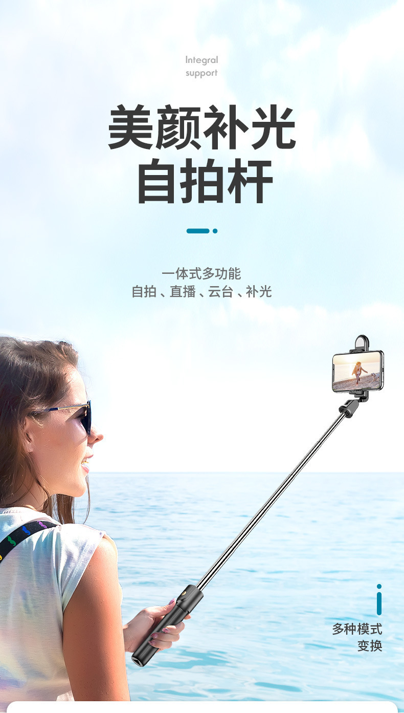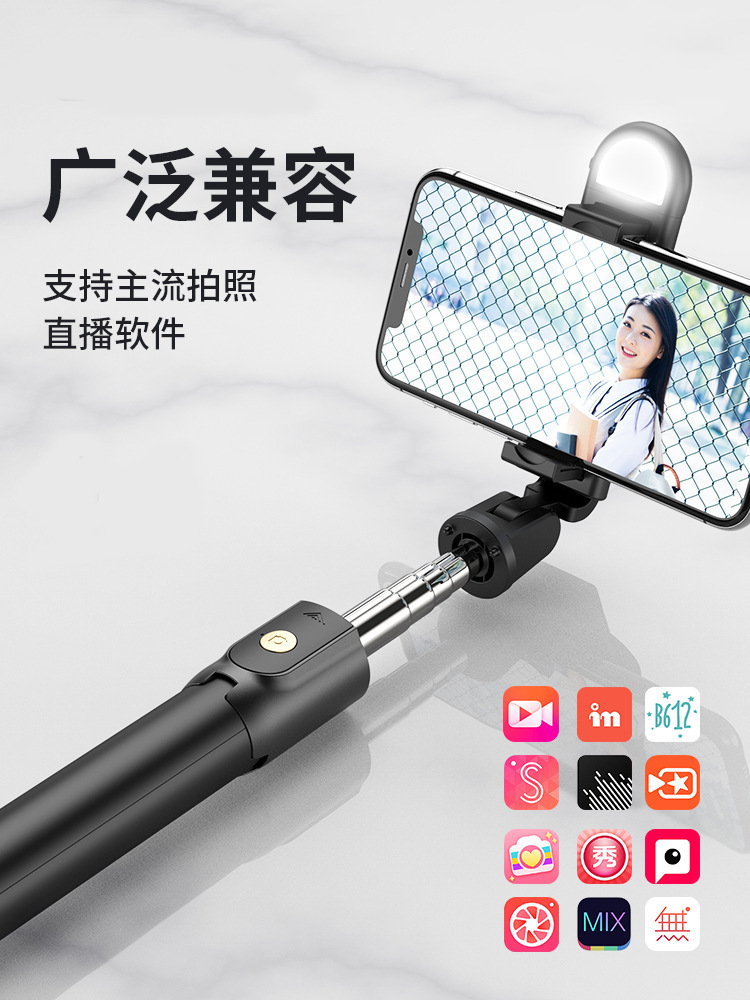 XYXD 휴대 전화 셀카 스틱 블루투스 원격 제어 미러 필 라이트 접이식 올인원 휴대용 데스크탑 삼각대 스탠드스토어 가기