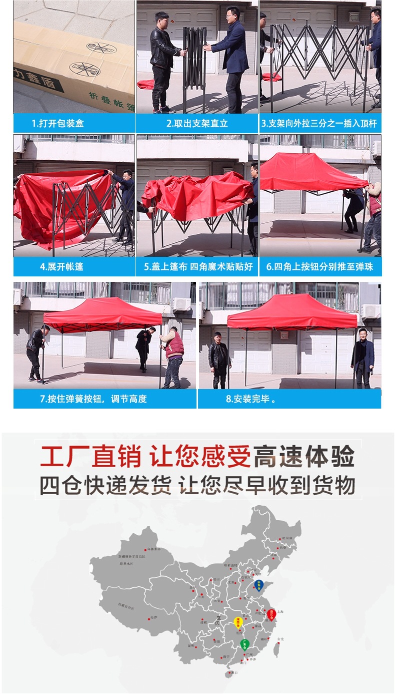 야외 텐트 광고 접이식 접이식 차양 대형 우산 4각 우산 차고 주차장 방수 천막 4각 스톨스토어 가기