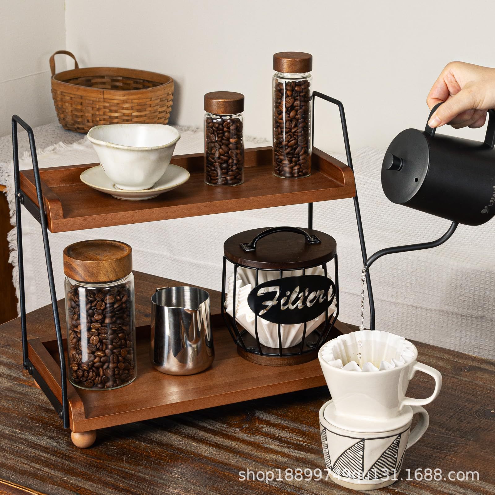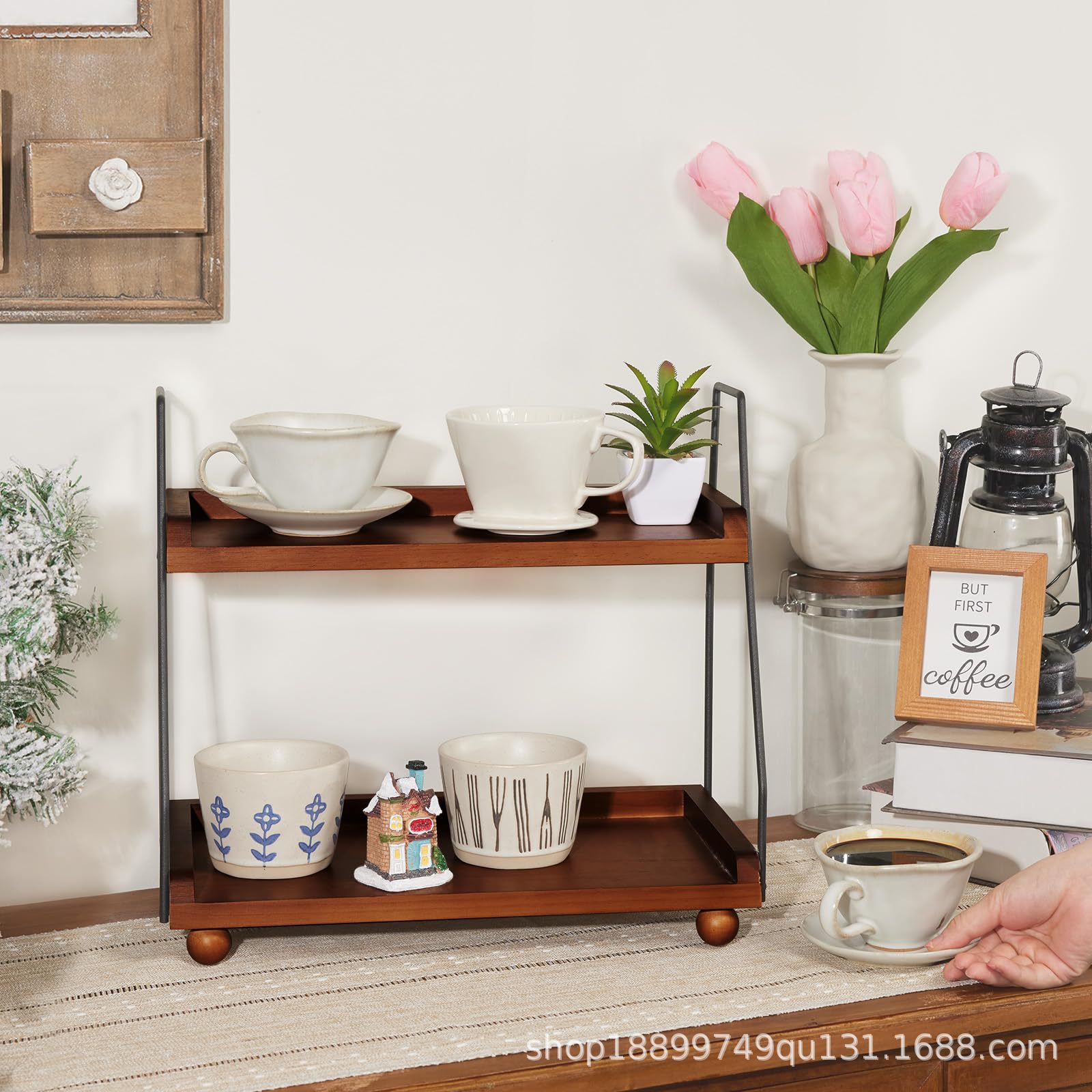 단단한 나무 컵 보관함 사무실 책상 다층 컵 홀더 차 컵 화장품 보관함 주방 조미료