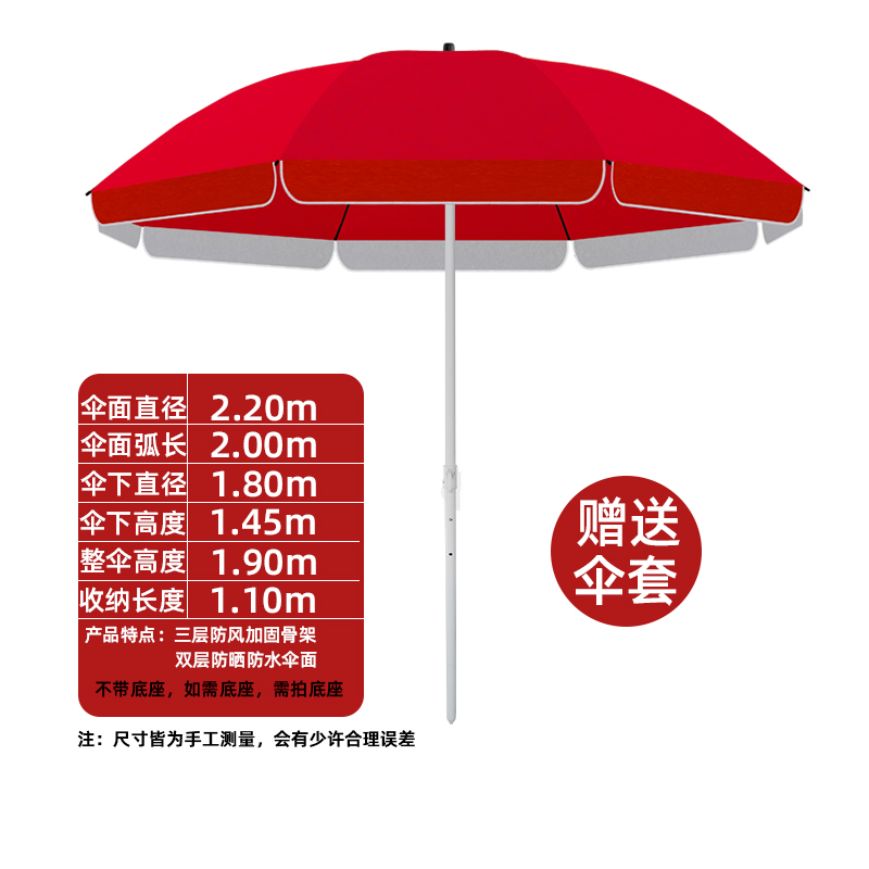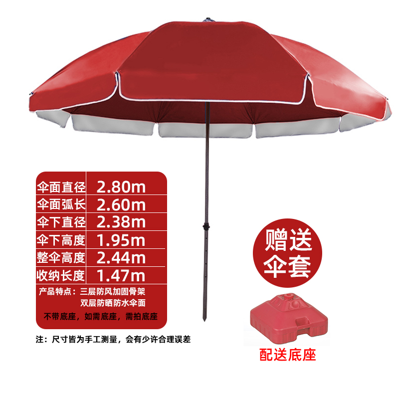 • [두꺼운 이중우산+방풍우산꽂이] 2.8M 중형 레드 - 30L 베이스 포함