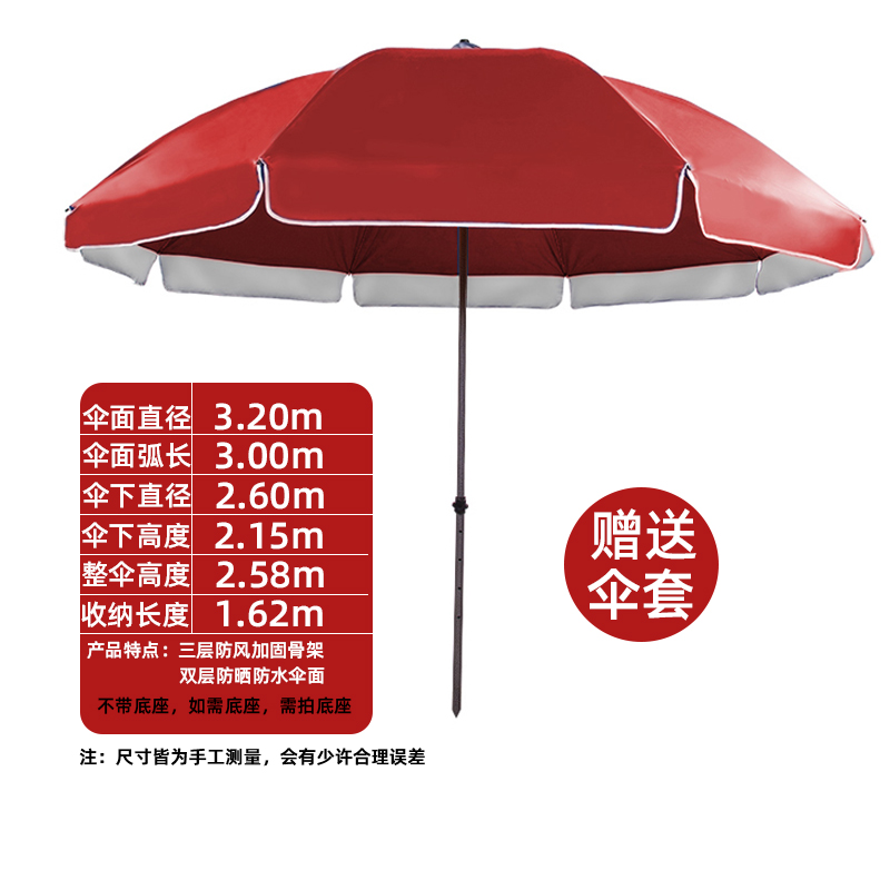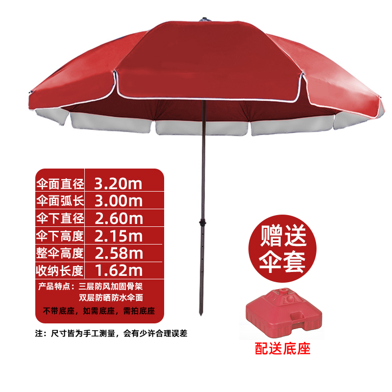• [두꺼운 이중우산+방풍우산꽂이] 3.2M 중대형 레드 - 30L 베이스 포함