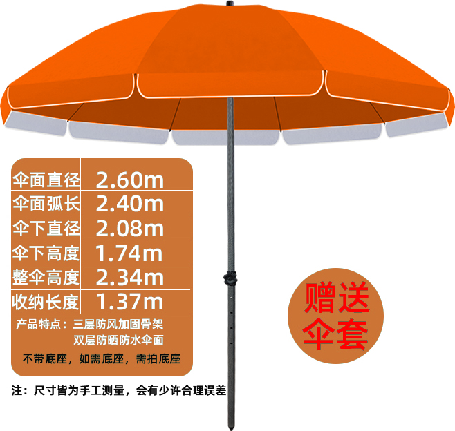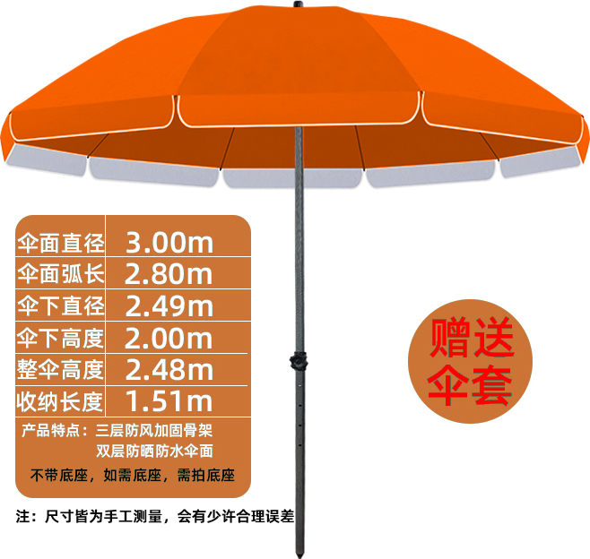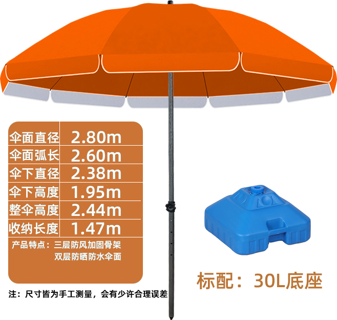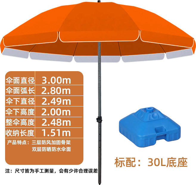 • [두꺼운 이중우산+방풍우산꽂이] 3.0M 중대형 오렌지 - 30L 베이스 포함