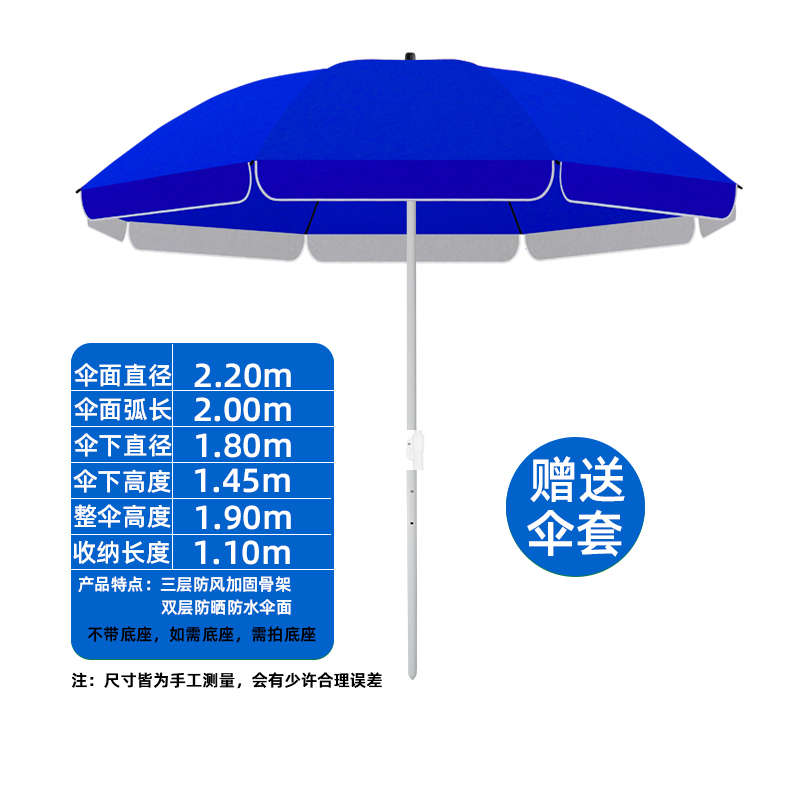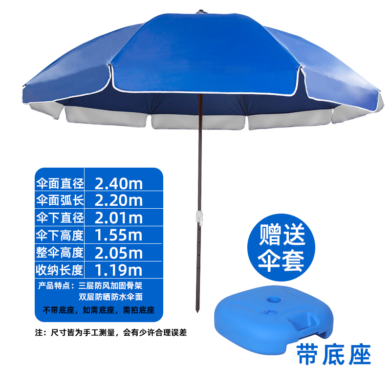 • [두꺼운 이중우산+방풍우산꽂이] 2.4M 스몰 사파이어 블루 - 20L 베이스 포함