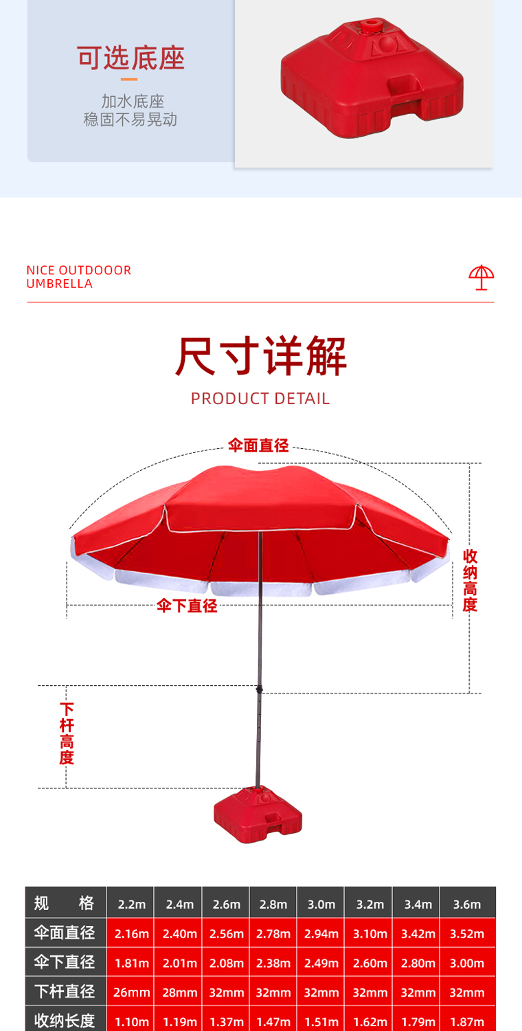 • [두꺼운 이중우산+방풍우산꽂이] 3.6M 대형 레드 - 30L 베이스 포함