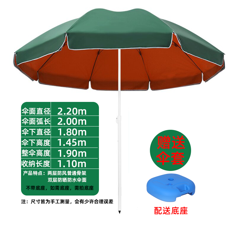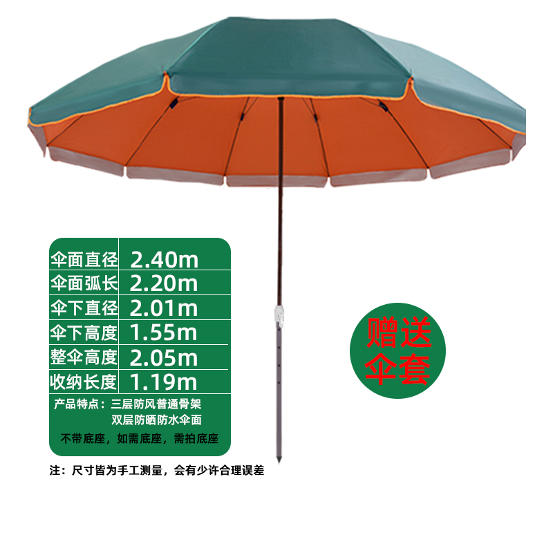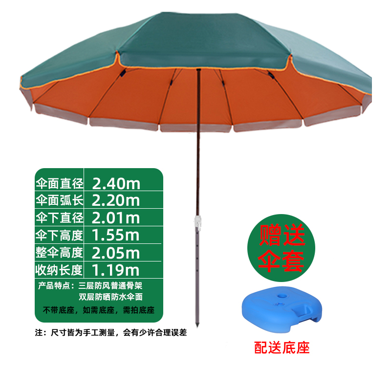 • [두꺼운 이중우산+방풍우산꽂이] 2.4M 소형 그린오렌지 - 20L 베이스 포함