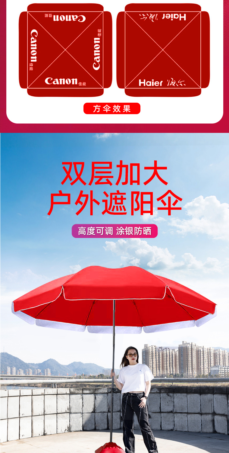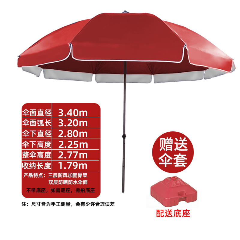 • [두꺼운 이중우산+방풍우산꽂이] 3.4M 대형 레드 - 30L 베이스 포함