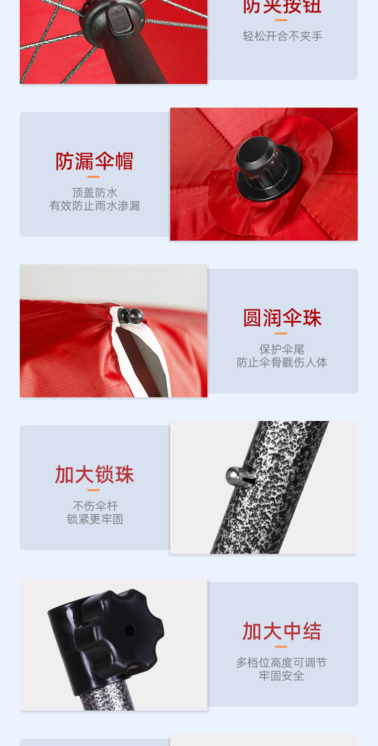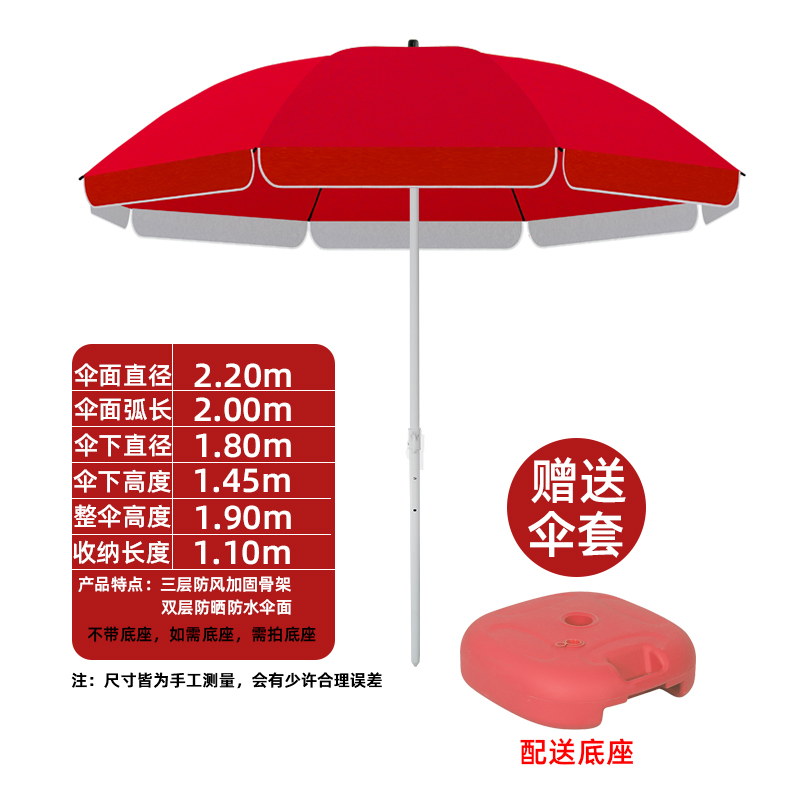 • [두꺼운 이중우산+방풍우산꽂이] 2.6M 중형 레드 - 30L 베이스 포함
