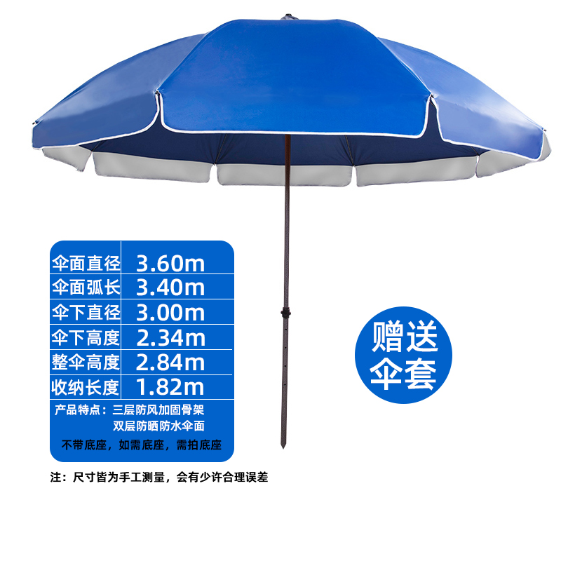 • [두꺼운 이중우산+방풍우산꽂이] 3.6M 대형 사파이어 블루 - 30L 베이스 포함