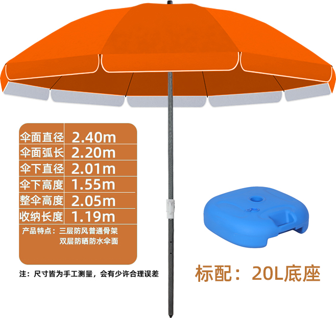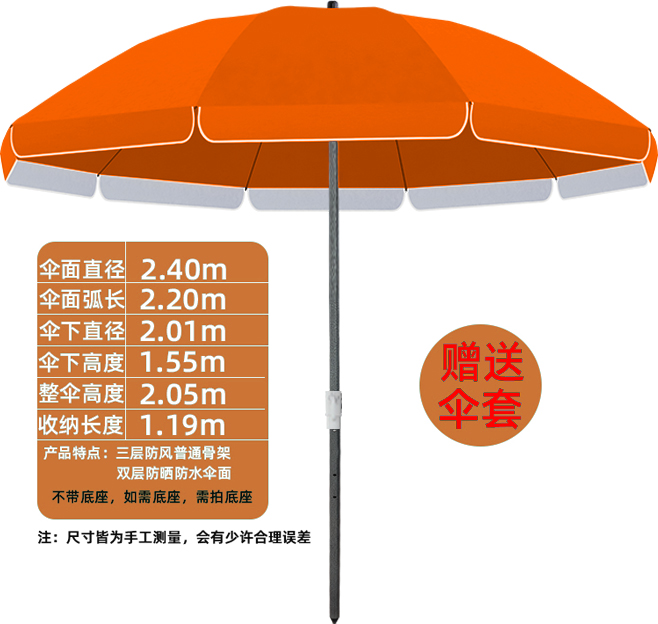 • [두꺼운 이중우산+방풍우산꽂이] 2.4M 스몰오렌지 - 20L 베이스 포함
