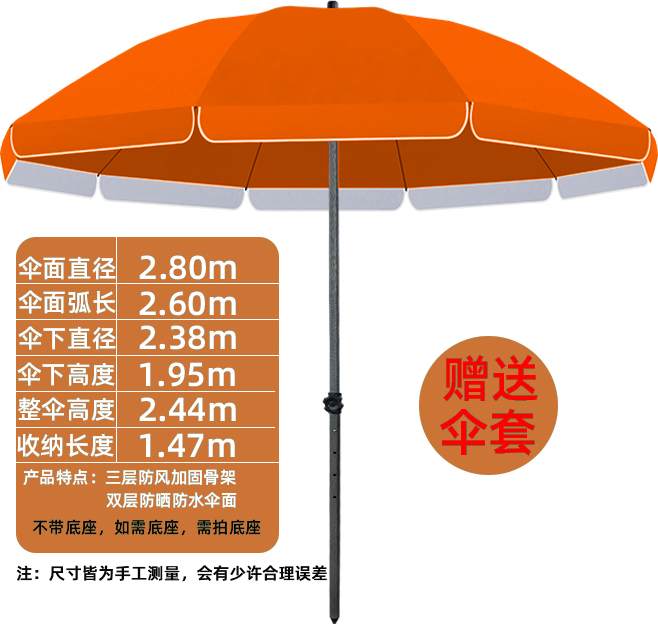 • [두꺼운 이중우산+방풍우산꽂이] 2.8M 미디엄 오렌지 - 30L 베이스 포함